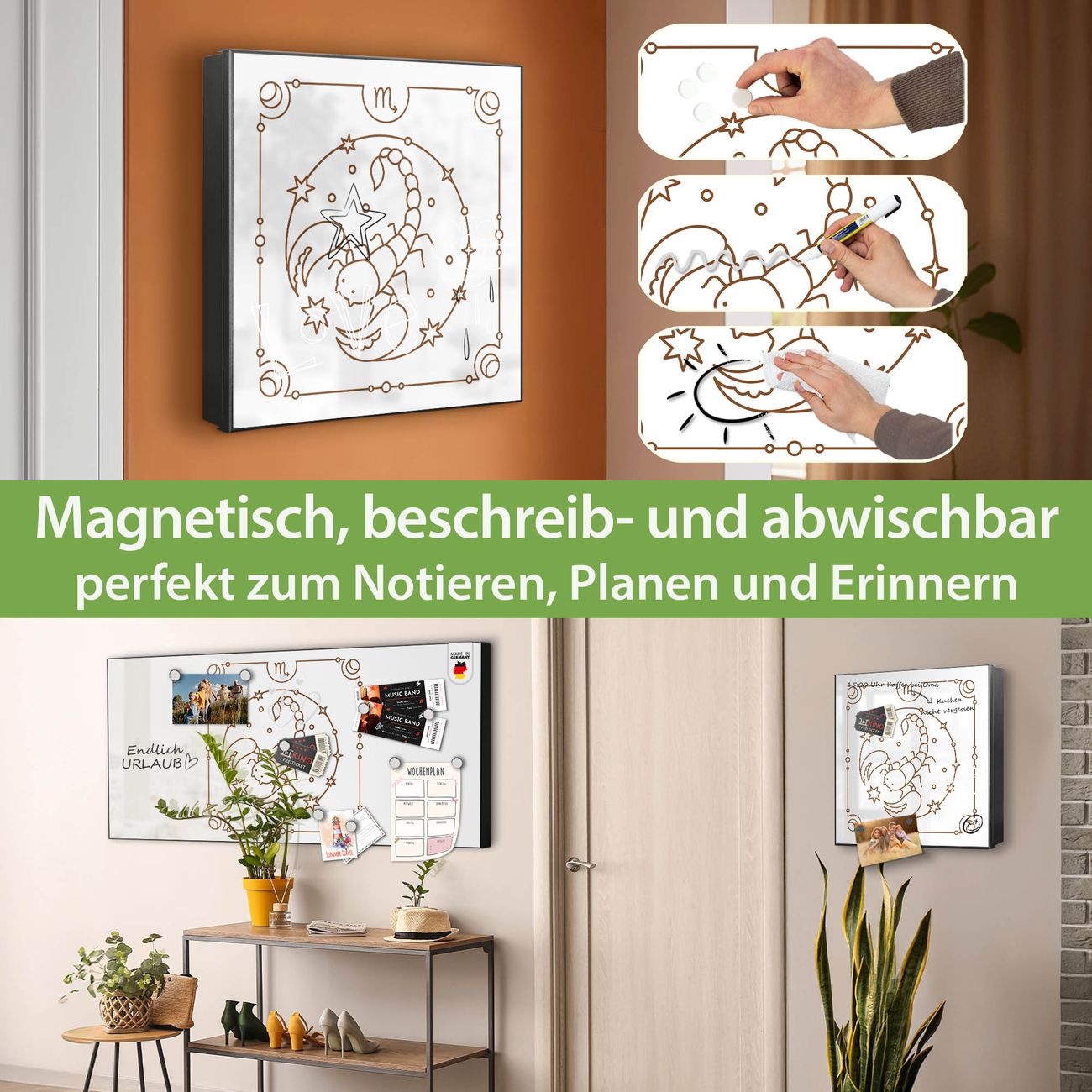 ✅ Magnetisch und mit Kreidestift beschreibbar, links angeschlagene TürOrdnung und Design in einem