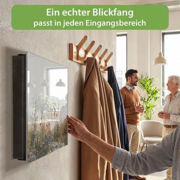 Bringe Ordnung und Eleganz in deinen Eingangsbereich mit dem banjado Schlüsselkasten Motiv Motiv Sommerliche Blumenwiese. Die moderne Schlüsselbox kombiniert funktionales Design mit hochwertiger Verarbeitung und wird so zu einem echten Hingucker in Flur, Büro oder Ferienwohnung. ✅ Stilvolle Schlüsselaufbewahrung mit Glasfront im Motiv Motiv Sommerliche Blumenwiese Der Design-Schlüsselkasten Motiv Motiv Sommerliche Blumenwiese bietet Platz für bis zu 50 Schlüssel, die auf 5 stabilen Reihen mit je 10 Haken übersichtlich verstaut werden. Mit seinen kompakten Maßen von 30 x 30 x 5 cm passt die Schlüsselbox perfekt auch in kleinere Räume. Der schwarz lackierte Stahlkorpus mit rechts angeschlagenem Türscharnier harmoniert mit der Glasfront und fügt sich nahtlos in jedes Wohnambiente ein. Ob als Schlüsselorganizer für Zuhause oder als praktische Lösung für Büros, Praxen und Gewerbe, der banjado Schlüsselkasten sorgt für Ordnung und Übersicht. Dank der magnetischen, mit Kreidestiften beschreibbaren Glasfront kannst du Notizen anheften oder Termine direkt auf der Oberfläche festhalten. Die Schlüsselbox Motiv Motiv Sommerliche Blumenwiese zur Wandmontage wird inklusive Befestigungsmaterial geliefert und ist schnell angebracht. So hast du deine Schlüssel jederzeit griffbereit und zugleich stilvoll verstaut. Mit diesem banjado Schlüsselkasten Motiv Motiv Sommerliche Blumenwiese kombinierst du praktische Aufbewahrung mit stilvollem Wohndesign. Ob privat oder geschäftlich, die Schlüsselbox sorgt für mehr Ordnung, Übersicht und ein wohnliches Ambiente.Vorteile im Überblick