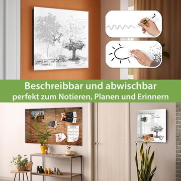 Bringe Ordnung und Eleganz in deinen Eingangsbereich mit dem banjado Schlüsselkasten Motiv Motiv Sommerliche Parkszene. Die moderne Schlüsselbox kombiniert funktionales Design mit hochwertiger Verarbeitung und wird so zu einem echten Hingucker in Flur, Büro oder Ferienwohnung. ✅ Stilvolle Schlüsselaufbewahrung mit Glasfront im Motiv Motiv Sommerliche Parkszene Der Design-Schlüsselkasten Motiv Motiv Sommerliche Parkszene bietet Platz für bis zu 50 Schlüssel, die auf 5 stabilen Reihen mit je 10 Haken übersichtlich verstaut werden. Mit seinen kompakten Maßen von 30 x 30 x 5 cm passt die Schlüsselbox perfekt auch in kleinere Räume. Der schwarz lackierte Stahlkorpus mit rechts angeschlagenem Türscharnier harmoniert mit der Glasfront und fügt sich nahtlos in jedes Wohnambiente ein. Ob als Schlüsselorganizer für Zuhause oder als praktische Lösung für Büros, Praxen und Gewerbe, der banjado Schlüsselkasten sorgt für Ordnung und Übersicht. Dank der magnetischen, mit Kreidestiften beschreibbaren Glasfront kannst du Notizen anheften oder Termine direkt auf der Oberfläche festhalten. Die Schlüsselbox Motiv Motiv Sommerliche Parkszene zur Wandmontage wird inklusive Befestigungsmaterial geliefert und ist schnell angebracht. So hast du deine Schlüssel jederzeit griffbereit und zugleich stilvoll verstaut. Mit diesem banjado Schlüsselkasten Motiv Motiv Sommerliche Parkszene kombinierst du praktische Aufbewahrung mit stilvollem Wohndesign. Ob privat oder geschäftlich, die Schlüsselbox sorgt für mehr Ordnung, Übersicht und ein wohnliches Ambiente.Vorteile im Überblick
