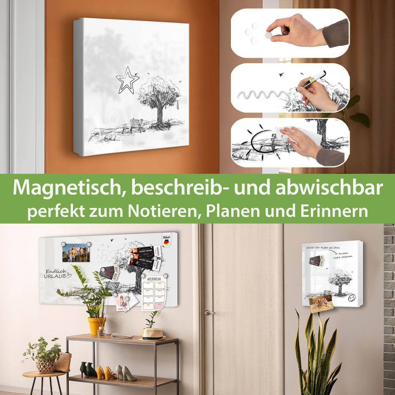 ✅ Magnetisch und mit Kreidestift beschreibbar, links angeschlagene TürOrdnung und Design in einem