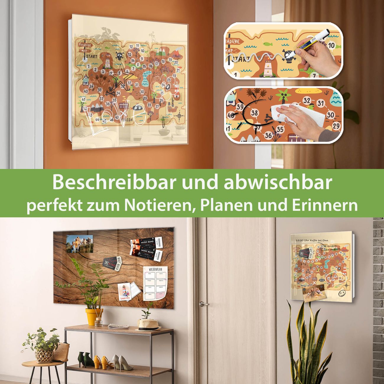 ✅ Magnetisch und mit Kreidestift beschreibbar, gehärtetes Glas, links angeschlagene TürOrdnung und Design in einem
