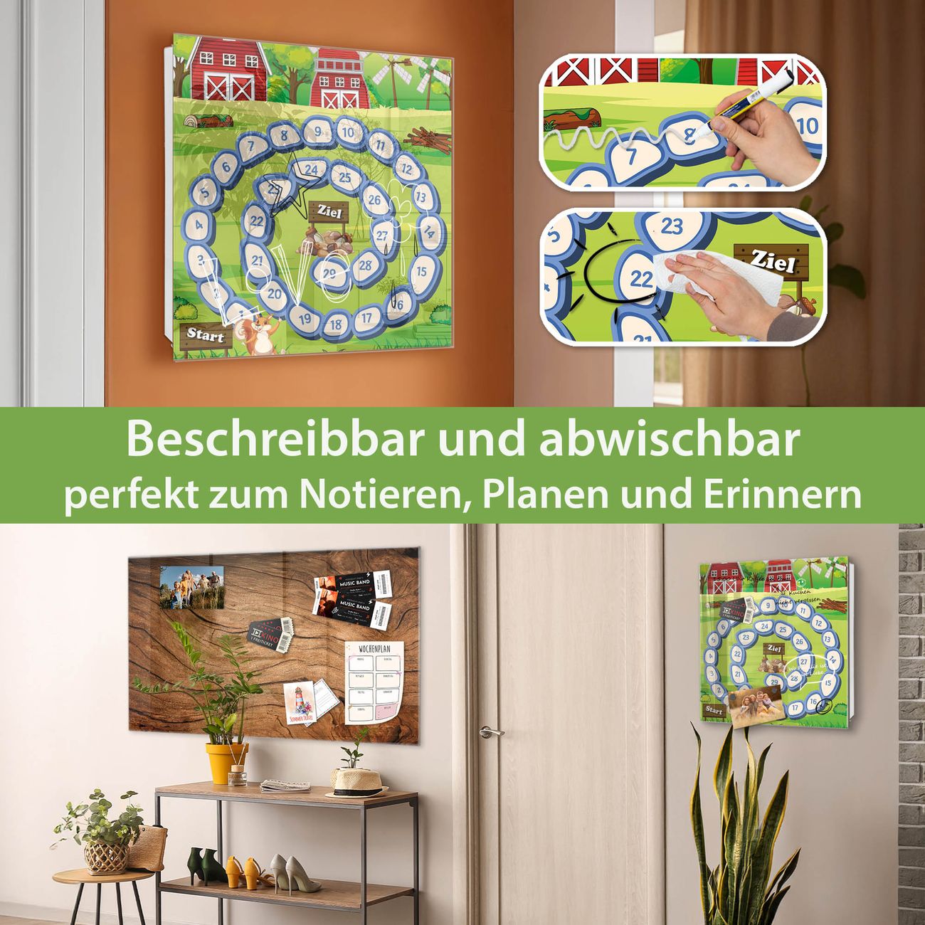 ✅ Magnetisch und mit Kreidestift beschreibbar, gehärtetes Glas, links angeschlagene TürOrdnung und Design in einem