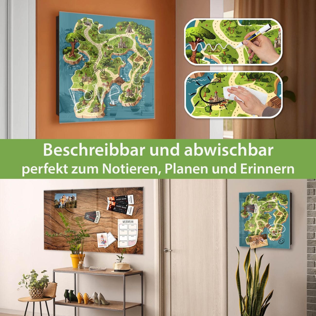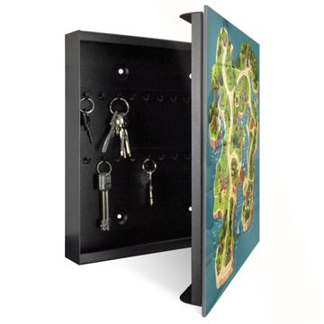 Bringe Ordnung und Eleganz in deinen Eingangsbereich mit dem banjado Schlüsselkasten Motiv Motiv Spielinsel. Die moderne Schlüsselbox kombiniert funktionales Design mit hochwertiger Verarbeitung und wird so zu einem echten Hingucker in Flur, Büro oder Ferienwohnung. ✅ Stilvolle Schlüsselaufbewahrung mit Glasfront im Motiv Motiv Spielinsel Der Design-Schlüsselkasten Motiv Motiv Spielinsel bietet Platz für bis zu 50 Schlüssel, die auf 5 stabilen Reihen mit je 10 Haken übersichtlich verstaut werden. Mit seinen kompakten Maßen von 30 x 30 x 5 cm passt die Schlüsselbox perfekt auch in kleinere Räume. Der schwarz lackierte Stahlkorpus mit rechts angeschlagenem Türscharnier harmoniert mit der Glasfront und fügt sich nahtlos in jedes Wohnambiente ein. Ob als Schlüsselorganizer für Zuhause oder als praktische Lösung für Büros, Praxen und Gewerbe, der banjado Schlüsselkasten sorgt für Ordnung und Übersicht. Dank der magnetischen, mit Kreidestiften beschreibbaren Glasfront kannst du Notizen anheften oder Termine direkt auf der Oberfläche festhalten. Die Schlüsselbox Motiv Motiv Spielinsel zur Wandmontage wird inklusive Befestigungsmaterial geliefert und ist schnell angebracht. So hast du deine Schlüssel jederzeit griffbereit und zugleich stilvoll verstaut. Mit diesem banjado Schlüsselkasten Motiv Motiv Spielinsel kombinierst du praktische Aufbewahrung mit stilvollem Wohndesign. Ob privat oder geschäftlich, die Schlüsselbox sorgt für mehr Ordnung, Übersicht und ein wohnliches Ambiente.Vorteile im Überblick