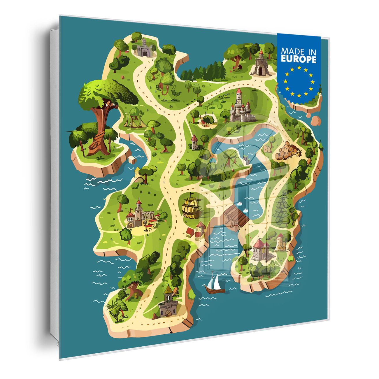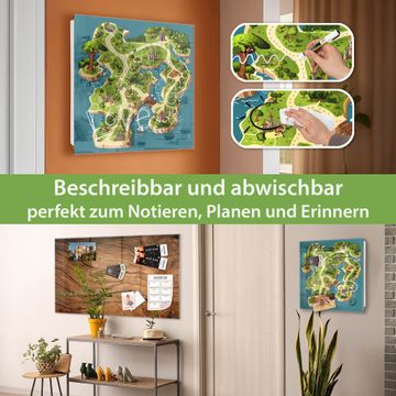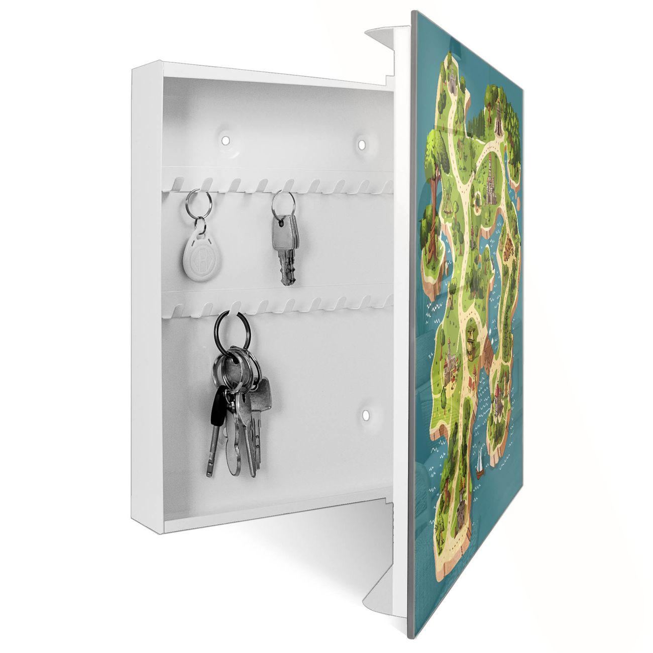 Bringe Ordnung und Eleganz in deinen Eingangsbereich mit dem banjado Schlüsselkasten Motiv Motiv Spielinsel. Die moderne Schlüsselbox kombiniert funktionales Design mit hochwertiger Verarbeitung und wird so zu einem echten Hingucker in Flur, Büro oder Ferienwohnung. ✅ Stilvolle Schlüsselaufbewahrung mit Glasfront im Motiv Motiv Spielinsel Der Design-Schlüsselkasten Motiv Motiv Spielinsel bietet Platz für bis zu 50 Schlüssel, die auf 5 stabilen Reihen mit je 10 Haken übersichtlich verstaut werden. Mit seinen kompakten Maßen von 30 x 30 x 5 cm passt die Schlüsselbox perfekt auch in kleinere Räume. Der weiß lackierte Stahlkorpus mit rechts angeschlagenem Türscharnier harmoniert mit der Glasfront und fügt sich nahtlos in jedes Wohnambiente ein. Ob als Schlüsselorganizer für Zuhause oder als praktische Lösung für Büros, Praxen und Gewerbe, der banjado Schlüsselkasten sorgt für Ordnung und Übersicht. Dank der magnetischen, mit Kreidestiften beschreibbaren Glasfront kannst du Notizen anheften oder Termine direkt auf der Oberfläche festhalten. Die Schlüsselbox Motiv Motiv Spielinsel zur Wandmontage wird inklusive Befestigungsmaterial geliefert und ist schnell angebracht. So hast du deine Schlüssel jederzeit griffbereit und zugleich stilvoll verstaut. Mit diesem banjado Schlüsselkasten Motiv Motiv Spielinsel kombinierst du praktische Aufbewahrung mit stilvollem Wohndesign. Ob privat oder geschäftlich, die Schlüsselbox sorgt für mehr Ordnung, Übersicht und ein wohnliches Ambiente.Vorteile im Überblick
