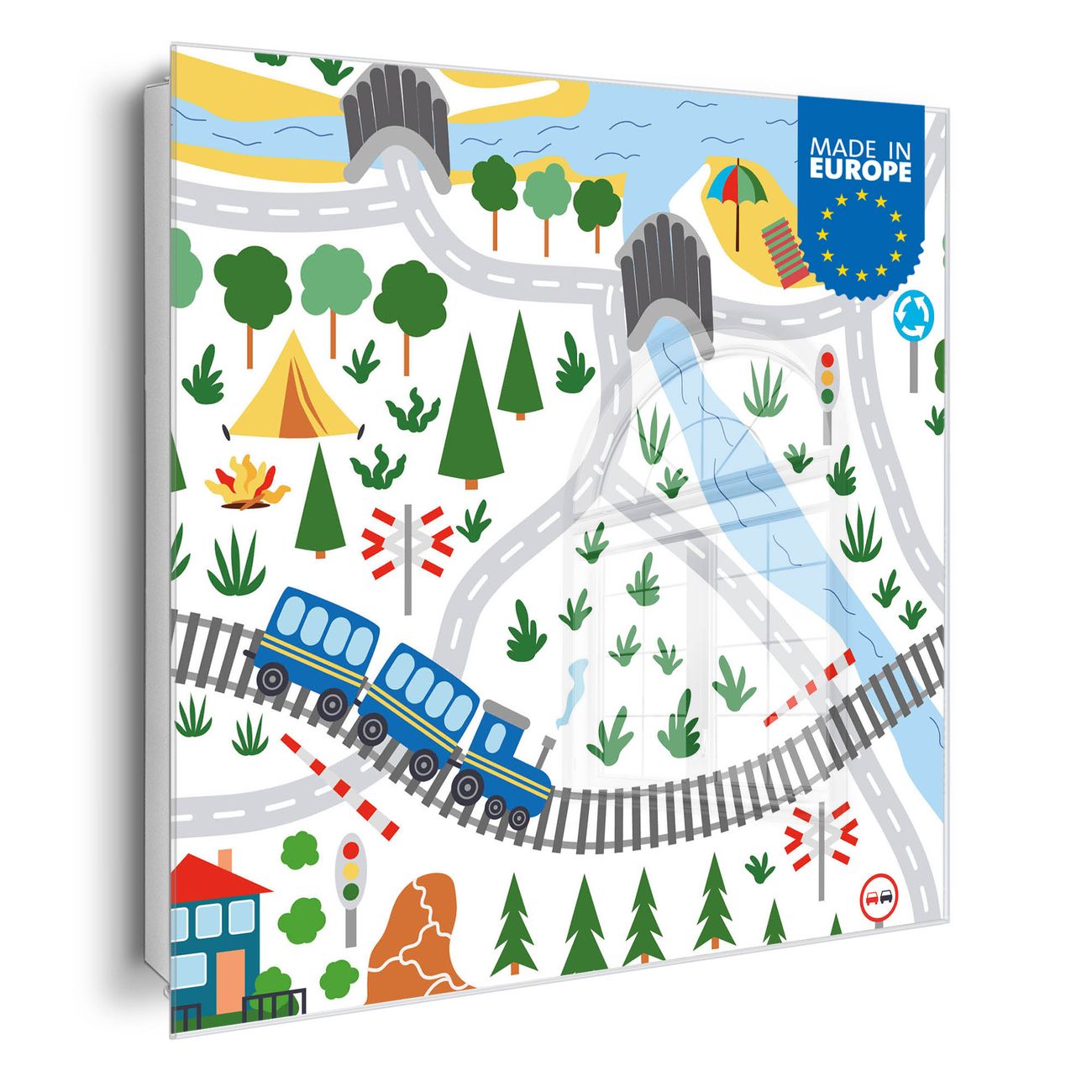 Bringe Ordnung und Eleganz in deinen Eingangsbereich mit dem banjado Schlüsselkasten Motiv Motiv Spielstraße 4. Die moderne Schlüsselbox kombiniert funktionales Design mit hochwertiger Verarbeitung und wird so zu einem echten Hingucker in Flur, Büro oder Ferienwohnung. ✅ Stilvolle Schlüsselaufbewahrung mit Glasfront im Motiv Motiv Spielstraße 4 Der Design-Schlüsselkasten Motiv Motiv Spielstraße 4 bietet Platz für bis zu 50 Schlüssel, die auf 5 stabilen Reihen mit je 10 Haken übersichtlich verstaut werden. Mit seinen kompakten Maßen von 30 x 30 x 5 cm passt die Schlüsselbox perfekt auch in kleinere Räume. Der weiß lackierte Stahlkorpus mit rechts angeschlagenem Türscharnier harmoniert mit der Glasfront und fügt sich nahtlos in jedes Wohnambiente ein. Ob als Schlüsselorganizer für Zuhause oder als praktische Lösung für Büros, Praxen und Gewerbe, der banjado Schlüsselkasten sorgt für Ordnung und Übersicht. Dank der magnetischen, mit Kreidestiften beschreibbaren Glasfront kannst du Notizen anheften oder Termine direkt auf der Oberfläche festhalten. Die Schlüsselbox Motiv Motiv Spielstraße 4 zur Wandmontage wird inklusive Befestigungsmaterial geliefert und ist schnell angebracht. So hast du deine Schlüssel jederzeit griffbereit und zugleich stilvoll verstaut. Mit diesem banjado Schlüsselkasten Motiv Motiv Spielstraße 4 kombinierst du praktische Aufbewahrung mit stilvollem Wohndesign. Ob privat oder geschäftlich, die Schlüsselbox sorgt für mehr Ordnung, Übersicht und ein wohnliches Ambiente.Vorteile im Überblick