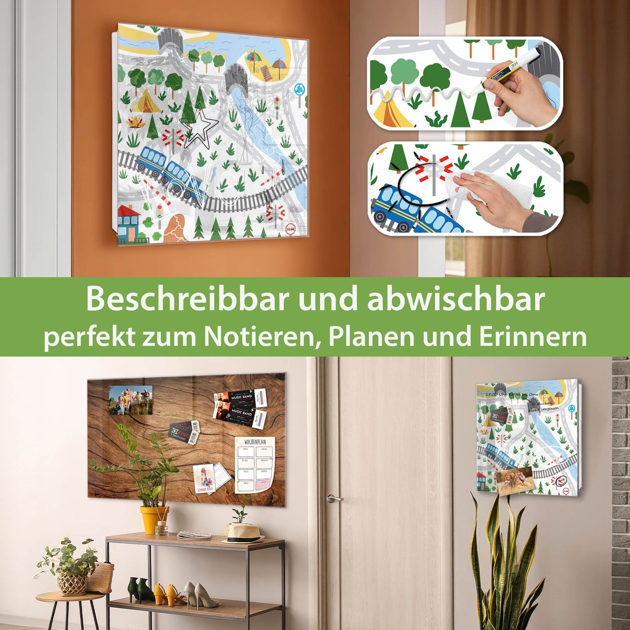 ✅ Magnetisch und mit Kreidestift beschreibbar, gehärtetes Glas, rechts angeschlagene TürOrdnung und Design in einem