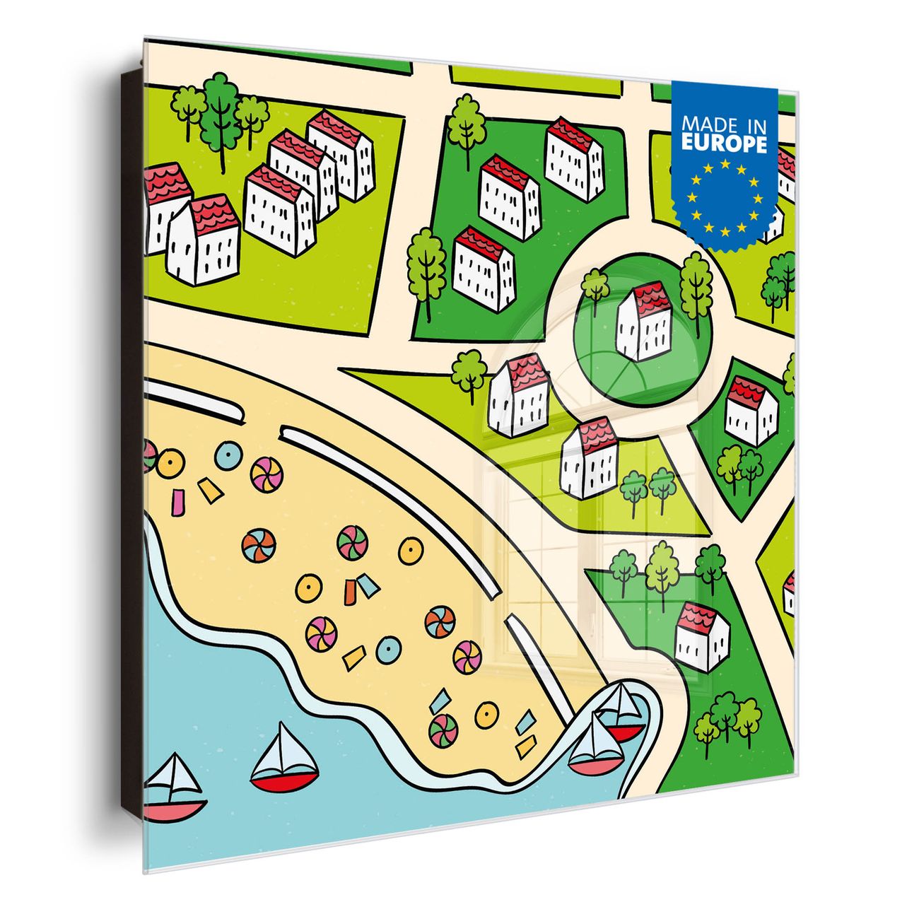 Bringe Ordnung und Eleganz in deinen Eingangsbereich mit dem banjado Schlüsselkasten Motiv Motiv Spielstraße 5. Die moderne Schlüsselbox kombiniert funktionales Design mit hochwertiger Verarbeitung und wird so zu einem echten Hingucker in Flur, Büro oder Ferienwohnung. ✅ Stilvolle Schlüsselaufbewahrung mit Glasfront im Motiv Motiv Spielstraße 5 Der Design-Schlüsselkasten Motiv Motiv Spielstraße 5 bietet Platz für bis zu 50 Schlüssel, die auf 5 stabilen Reihen mit je 10 Haken übersichtlich verstaut werden. Mit seinen kompakten Maßen von 30 x 30 x 5 cm passt die Schlüsselbox perfekt auch in kleinere Räume. Der schwarz lackierte Stahlkorpus mit rechts angeschlagenem Türscharnier harmoniert mit der Glasfront und fügt sich nahtlos in jedes Wohnambiente ein. Ob als Schlüsselorganizer für Zuhause oder als praktische Lösung für Büros, Praxen und Gewerbe, der banjado Schlüsselkasten sorgt für Ordnung und Übersicht. Dank der magnetischen, mit Kreidestiften beschreibbaren Glasfront kannst du Notizen anheften oder Termine direkt auf der Oberfläche festhalten. Die Schlüsselbox Motiv Motiv Spielstraße 5 zur Wandmontage wird inklusive Befestigungsmaterial geliefert und ist schnell angebracht. So hast du deine Schlüssel jederzeit griffbereit und zugleich stilvoll verstaut. Mit diesem banjado Schlüsselkasten Motiv Motiv Spielstraße 5 kombinierst du praktische Aufbewahrung mit stilvollem Wohndesign. Ob privat oder geschäftlich, die Schlüsselbox sorgt für mehr Ordnung, Übersicht und ein wohnliches Ambiente.Vorteile im Überblick