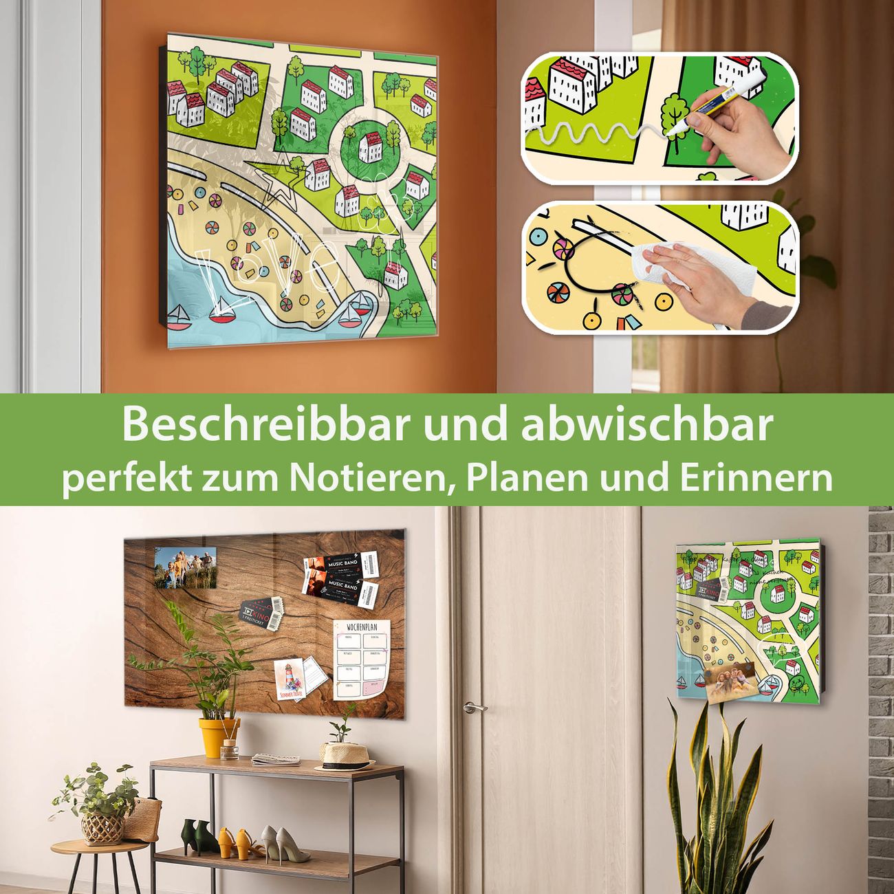✅ Magnetisch und mit Kreidestift beschreibbar, gehärtetes Glas, rechts angeschlagene TürOrdnung und Design in einem