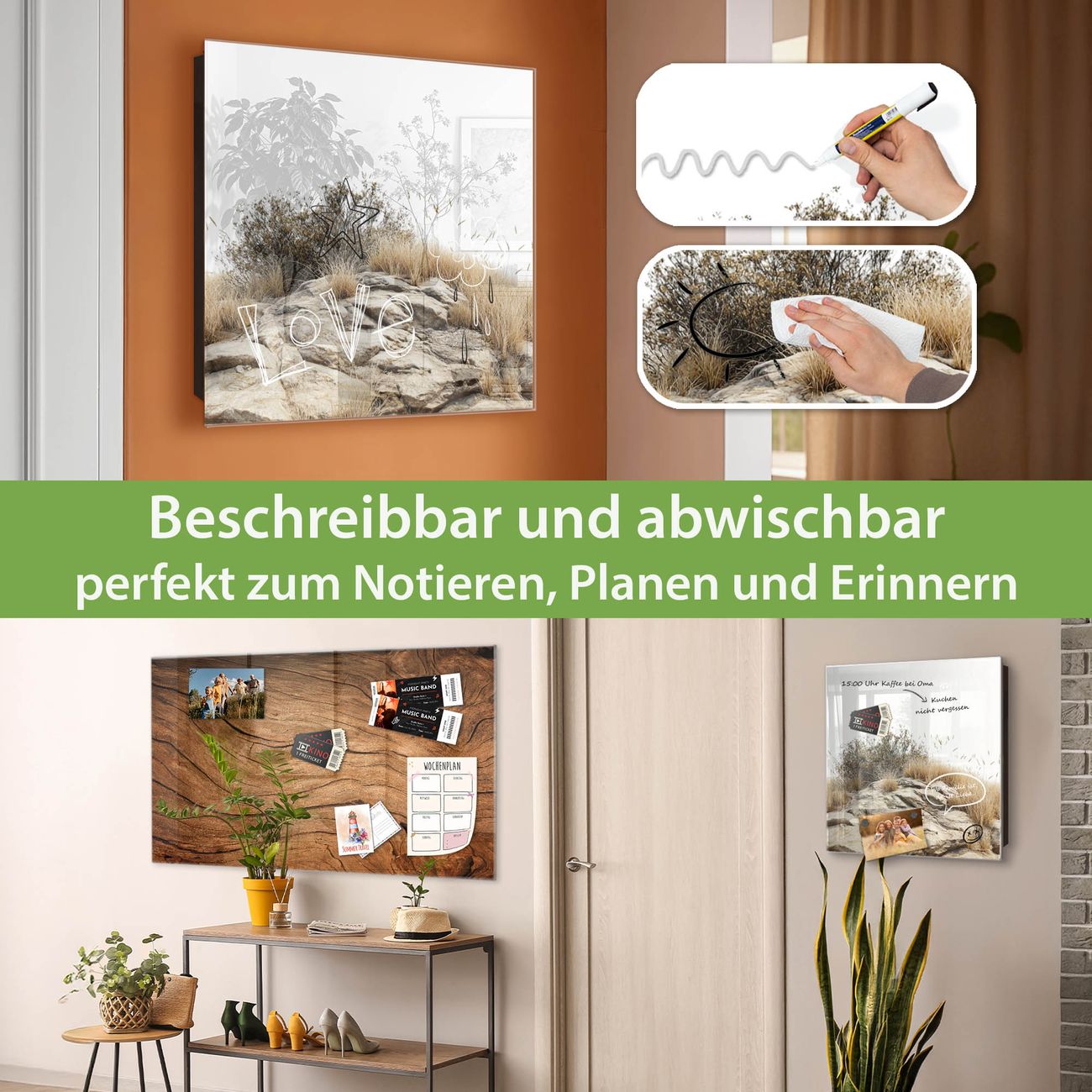 ✅ Magnetisch und mit Kreidestift beschreibbar, gehärtetes Glas, rechts angeschlagene TürOrdnung und Design in einem