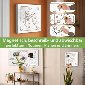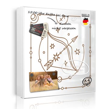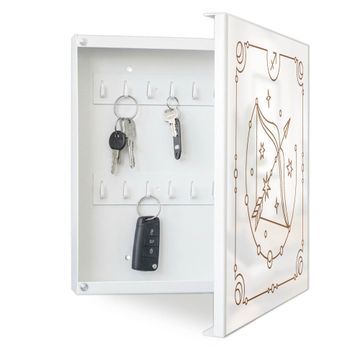 Bringe Ordnung und Eleganz in deinen Eingangsbereich mit dem banjado Schlüsselkasten Motiv Motiv Sternzeichen Schütze. Die moderne Schlüsselbox kombiniert funktionales Design mit hochwertiger Verarbeitung und wird so zu einem echten Hingucker in Flur, Büro oder Ferienwohnung. ✅ Stilvolle Schlüsselaufbewahrung mit Motiv Motiv Sternzeichen Schütze Der Design-Schlüsselkasten Motiv Motiv Sternzeichen Schütze bietet Platz für bis zu 32 Schlüssel, die auf 4 stabilen Reihen mit je 8 Haken übersichtlich verstaut werden. Mit seinen kompakten Maßen von 30 x 30 x 5 cm passt die Schlüsselbox perfekt auch in kleinere Räume. Der weiß lackierte Stahlkorpus mit rechts angeschlagenem Türscharnier harmoniert mit gedruckten Folie auf der Front und fügt sich nahtlos in jedes Wohnambiente ein. Ob als Schlüsselorganizer für Zuhause oder als praktische Lösung für Büros, Praxen und Gewerbe, der banjado Schlüsselkasten sorgt für Ordnung und Übersicht. Dank der magnetischen, mit Kreidestiften beschreibbaren Folie auf der Front kannst du Notizen anheften oder Termine direkt auf der Oberfläche festhalten. Die Schlüsselbox Motiv Motiv Sternzeichen Schütze zur Wandmontage wird inklusive Befestigungsmaterial geliefert und ist schnell angebracht. So hast du deine Schlüssel jederzeit griffbereit und zugleich stilvoll verstaut. Mit diesem banjado Schlüsselkasten Motiv Motiv Sternzeichen Schütze kombinierst du praktische Aufbewahrung mit stilvollem Wohndesign. Ob privat oder geschäftlich, die Schlüsselbox sorgt für mehr Ordnung, Übersicht und ein wohnliches Ambiente.Vorteile im Überblick