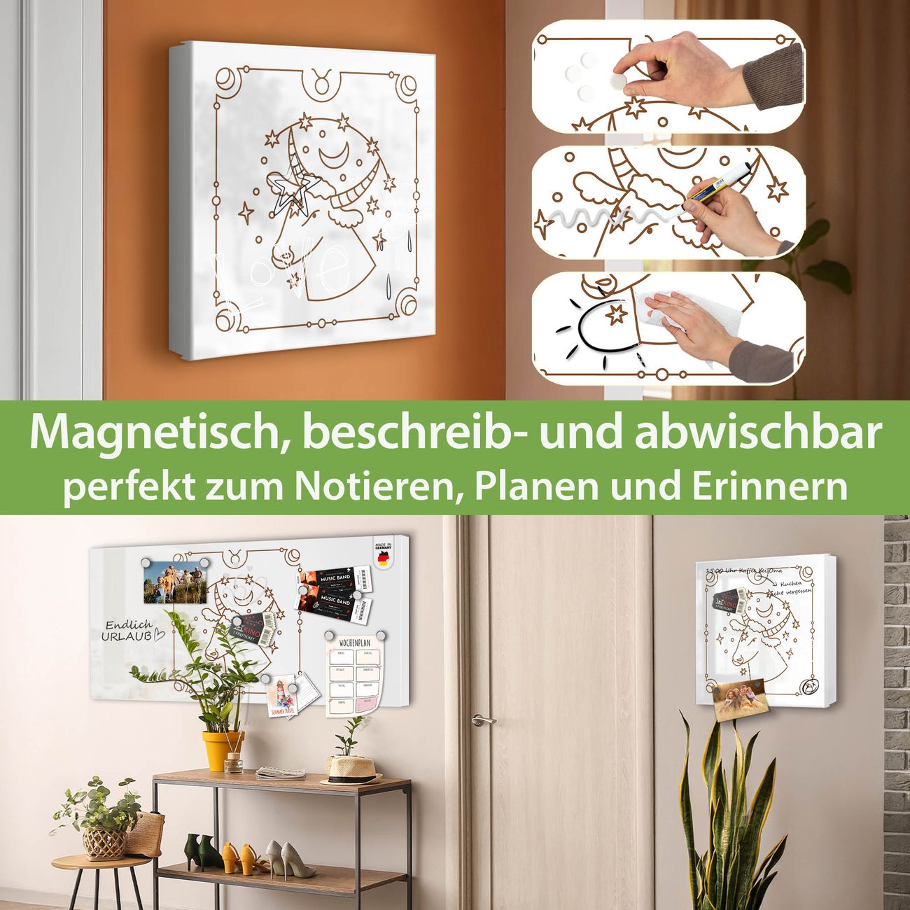 ✅ Magnetisch und mit Kreidestift beschreibbar, links angeschlagene TürOrdnung und Design in einem