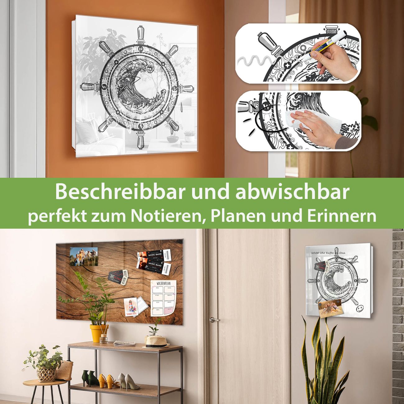 ✅ Magnetisch und mit Kreidestift beschreibbar, gehärtetes Glas, rechts angeschlagene TürOrdnung und Design in einem