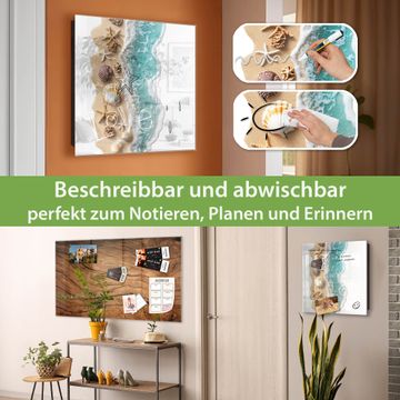 Bringe Ordnung und Eleganz in deinen Eingangsbereich mit dem banjado Schlüsselkasten Motiv Motiv Strandparadies. Die moderne Schlüsselbox kombiniert funktionales Design mit hochwertiger Verarbeitung und wird so zu einem echten Hingucker in Flur, Büro oder Ferienwohnung. ✅ Stilvolle Schlüsselaufbewahrung mit Glasfront im Motiv Motiv Strandparadies Der Design-Schlüsselkasten Motiv Motiv Strandparadies bietet Platz für bis zu 50 Schlüssel, die auf 5 stabilen Reihen mit je 10 Haken übersichtlich verstaut werden. Mit seinen kompakten Maßen von 30 x 30 x 5 cm passt die Schlüsselbox perfekt auch in kleinere Räume. Der schwarz lackierte Stahlkorpus mit rechts angeschlagenem Türscharnier harmoniert mit der Glasfront und fügt sich nahtlos in jedes Wohnambiente ein. Ob als Schlüsselorganizer für Zuhause oder als praktische Lösung für Büros, Praxen und Gewerbe, der banjado Schlüsselkasten sorgt für Ordnung und Übersicht. Dank der magnetischen, mit Kreidestiften beschreibbaren Glasfront kannst du Notizen anheften oder Termine direkt auf der Oberfläche festhalten. Die Schlüsselbox Motiv Motiv Strandparadies zur Wandmontage wird inklusive Befestigungsmaterial geliefert und ist schnell angebracht. So hast du deine Schlüssel jederzeit griffbereit und zugleich stilvoll verstaut. Mit diesem banjado Schlüsselkasten Motiv Motiv Strandparadies kombinierst du praktische Aufbewahrung mit stilvollem Wohndesign. Ob privat oder geschäftlich, die Schlüsselbox sorgt für mehr Ordnung, Übersicht und ein wohnliches Ambiente.Vorteile im Überblick