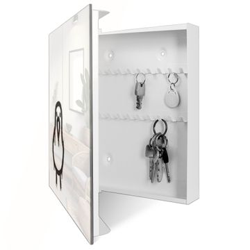 Bringe Ordnung und Eleganz in deinen Eingangsbereich mit dem banjado Schlüsselkasten Motiv Motiv Street Art Vogel. Die moderne Schlüsselbox kombiniert funktionales Design mit hochwertiger Verarbeitung und wird so zu einem echten Hingucker in Flur, Büro oder Ferienwohnung. ✅ Stilvolle Schlüsselaufbewahrung mit Glasfront im Motiv Motiv Street Art Vogel Der Design-Schlüsselkasten Motiv Motiv Street Art Vogel bietet Platz für bis zu 50 Schlüssel, die auf 5 stabilen Reihen mit je 10 Haken übersichtlich verstaut werden. Mit seinen kompakten Maßen von 30 x 30 x 5 cm passt die Schlüsselbox perfekt auch in kleinere Räume. Der weiß lackierte Stahlkorpus mit rechts angeschlagenem Türscharnier harmoniert mit der Glasfront und fügt sich nahtlos in jedes Wohnambiente ein. Ob als Schlüsselorganizer für Zuhause oder als praktische Lösung für Büros, Praxen und Gewerbe, der banjado Schlüsselkasten sorgt für Ordnung und Übersicht. Dank der magnetischen, mit Kreidestiften beschreibbaren Glasfront kannst du Notizen anheften oder Termine direkt auf der Oberfläche festhalten. Die Schlüsselbox Motiv Motiv Street Art Vogel zur Wandmontage wird inklusive Befestigungsmaterial geliefert und ist schnell angebracht. So hast du deine Schlüssel jederzeit griffbereit und zugleich stilvoll verstaut. Mit diesem banjado Schlüsselkasten Motiv Motiv Street Art Vogel kombinierst du praktische Aufbewahrung mit stilvollem Wohndesign. Ob privat oder geschäftlich, die Schlüsselbox sorgt für mehr Ordnung, Übersicht und ein wohnliches Ambiente.Vorteile im Überblick