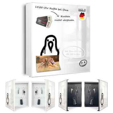 Bringe Ordnung und Eleganz in deinen Eingangsbereich mit dem banjado Schlüsselkasten Motiv Motiv Street Art Vogel Graffiti. Die moderne Schlüsselbox kombiniert funktionales Design mit hochwertiger Verarbeitung und wird so zu einem echten Hingucker in Flur, Büro oder Ferienwohnung. ✅ Stilvolle Schlüsselaufbewahrung mit Motiv Motiv Street Art Vogel Graffiti Der Design-Schlüsselkasten Motiv Motiv Street Art Vogel Graffiti bietet Platz für bis zu 32 Schlüssel, die auf 4 stabilen Reihen mit je 8 Haken übersichtlich verstaut werden. Mit seinen kompakten Maßen von 30 x 30 x 5 cm passt die Schlüsselbox perfekt auch in kleinere Räume. Der weiß lackierte Stahlkorpus mit links angeschlagenem Türscharnier harmoniert mit gedruckten Folie auf der Front und fügt sich nahtlos in jedes Wohnambiente ein. Ob als Schlüsselorganizer für Zuhause oder als praktische Lösung für Büros, Praxen und Gewerbe, der banjado Schlüsselkasten sorgt für Ordnung und Übersicht. Dank der magnetischen, mit Kreidestiften beschreibbaren Folie auf der Front kannst du Notizen anheften oder Termine direkt auf der Oberfläche festhalten. Die Schlüsselbox Motiv Motiv Street Art Vogel Graffiti zur Wandmontage wird inklusive Befestigungsmaterial geliefert und ist schnell angebracht. So hast du deine Schlüssel jederzeit griffbereit und zugleich stilvoll verstaut. Mit diesem banjado Schlüsselkasten Motiv Motiv Street Art Vogel Graffiti kombinierst du praktische Aufbewahrung mit stilvollem Wohndesign. Ob privat oder geschäftlich, die Schlüsselbox sorgt für mehr Ordnung, Übersicht und ein wohnliches Ambiente.Vorteile im Überblick