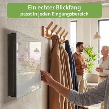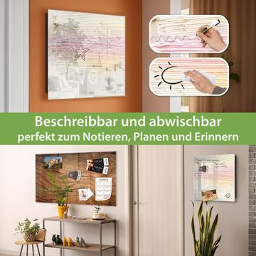 Bringe Ordnung und Eleganz in deinen Eingangsbereich mit dem banjado Schlüsselkasten Motiv Struktur Pastell. Die moderne Schlüsselbox kombiniert funktionales Design mit hochwertiger Verarbeitung und wird so zu einem echten Hingucker in Flur, Büro oder Ferienwohnung. ✅ Stilvolle Schlüsselaufbewahrung mit Glasfront im Motiv Motiv Struktur Pastell Der Design-Schlüsselkasten Motiv Struktur Pastell bietet Platz für bis zu 50 Schlüssel, die auf 5 stabilen Reihen mit je 10 Haken übersichtlich verstaut werden. Mit seinen kompakten Maßen von 30 x 30 x 5 cm passt die Schlüsselbox perfekt auch in kleinere Räume. Der schwarz lackierte Stahlkorpus mit rechts angeschlagenem Türscharnier harmoniert mit der Glasfront und fügt sich nahtlos in jedes Wohnambiente ein. Ob als Schlüsselorganizer für Zuhause oder als praktische Lösung für Büros, Praxen und Gewerbe, der banjado Schlüsselkasten sorgt für Ordnung und Übersicht. Dank der magnetischen, mit Kreidestiften beschreibbaren Glasfront kannst du Notizen anheften oder Termine direkt auf der Oberfläche festhalten. Die Schlüsselbox Motiv Struktur Pastell zur Wandmontage wird inklusive Befestigungsmaterial geliefert und ist schnell angebracht. So hast du deine Schlüssel jederzeit griffbereit und zugleich stilvoll verstaut. Mit diesem banjado Schlüsselkasten Motiv Struktur Pastell kombinierst du praktische Aufbewahrung mit stilvollem Wohndesign. Ob privat oder geschäftlich, die Schlüsselbox sorgt für mehr Ordnung, Übersicht und ein wohnliches Ambiente.Vorteile im Überblick
