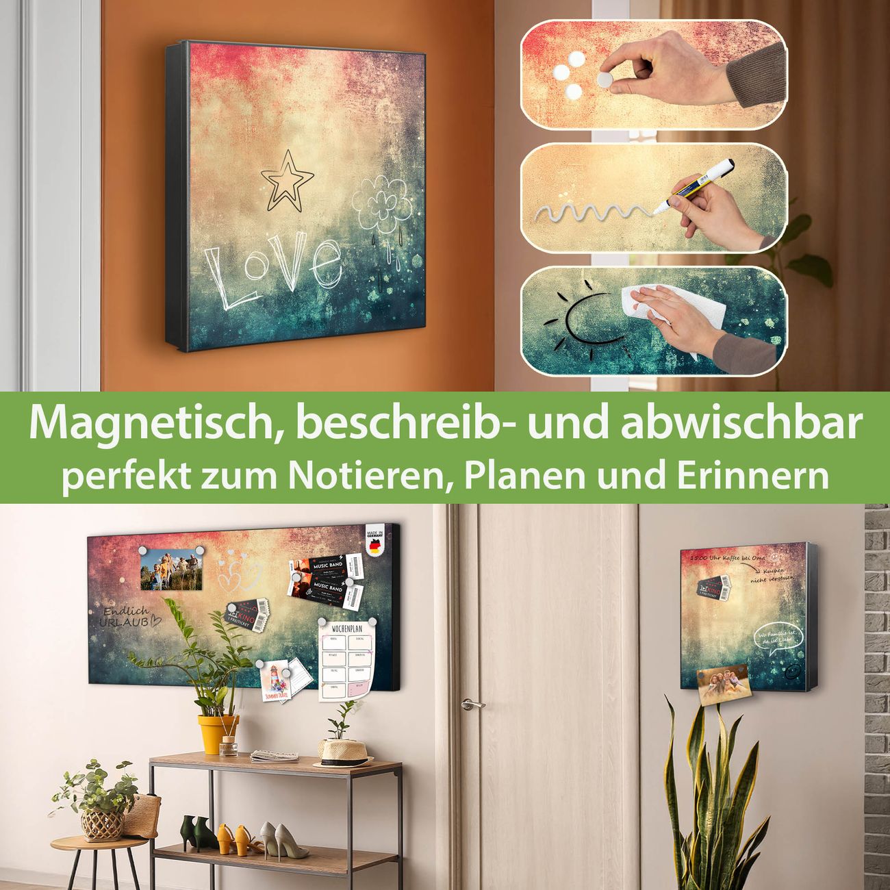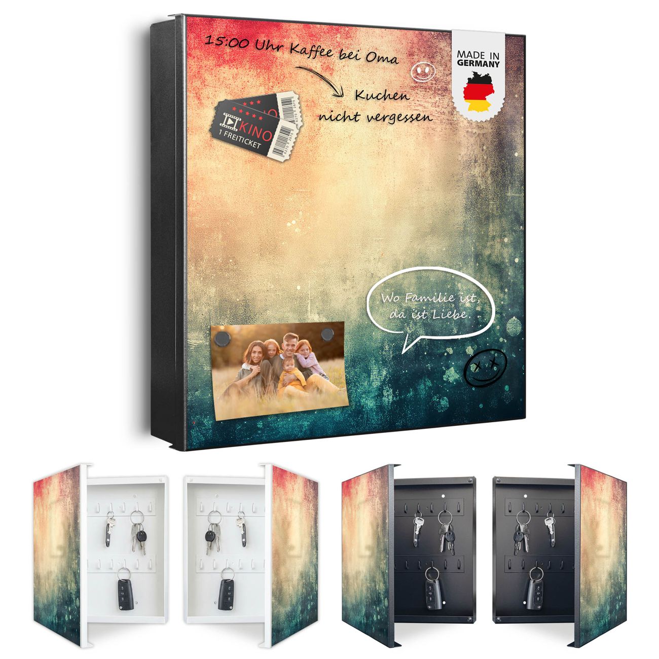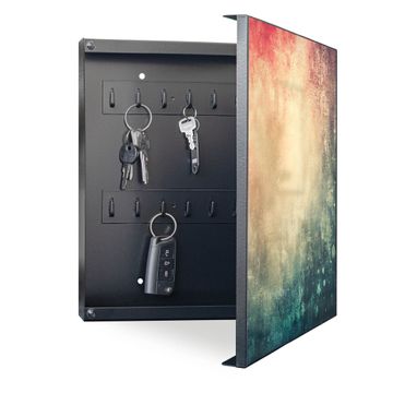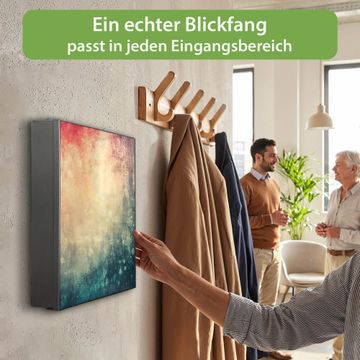 Bringe Ordnung und Eleganz in deinen Eingangsbereich mit dem banjado Schlüsselkasten Motiv Motiv Struktur Verträumt. Die moderne Schlüsselbox kombiniert funktionales Design mit hochwertiger Verarbeitung und wird so zu einem echten Hingucker in Flur, Büro oder Ferienwohnung. ✅ Stilvolle Schlüsselaufbewahrung mit Motiv Motiv Struktur Verträumt Der Design-Schlüsselkasten Motiv Motiv Struktur Verträumt bietet Platz für bis zu 32 Schlüssel, die auf 4 stabilen Reihen mit je 8 Haken übersichtlich verstaut werden. Mit seinen kompakten Maßen von 30 x 30 x 5 cm passt die Schlüsselbox perfekt auch in kleinere Räume. Der schwarz lackierte Stahlkorpus mit rechts angeschlagenem Türscharnier harmoniert mit gedruckten Folie auf der Front und fügt sich nahtlos in jedes Wohnambiente ein. Ob als Schlüsselorganizer für Zuhause oder als praktische Lösung für Büros, Praxen und Gewerbe, der banjado Schlüsselkasten sorgt für Ordnung und Übersicht. Dank der magnetischen, mit Kreidestiften beschreibbaren Folie auf der Front kannst du Notizen anheften oder Termine direkt auf der Oberfläche festhalten. Die Schlüsselbox Motiv Motiv Struktur Verträumt zur Wandmontage wird inklusive Befestigungsmaterial geliefert und ist schnell angebracht. So hast du deine Schlüssel jederzeit griffbereit und zugleich stilvoll verstaut. Mit diesem banjado Schlüsselkasten Motiv Motiv Struktur Verträumt kombinierst du praktische Aufbewahrung mit stilvollem Wohndesign. Ob privat oder geschäftlich, die Schlüsselbox sorgt für mehr Ordnung, Übersicht und ein wohnliches Ambiente.Vorteile im Überblick