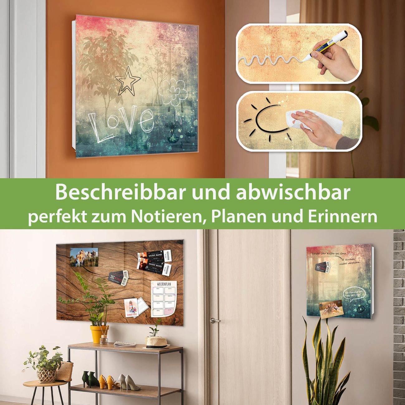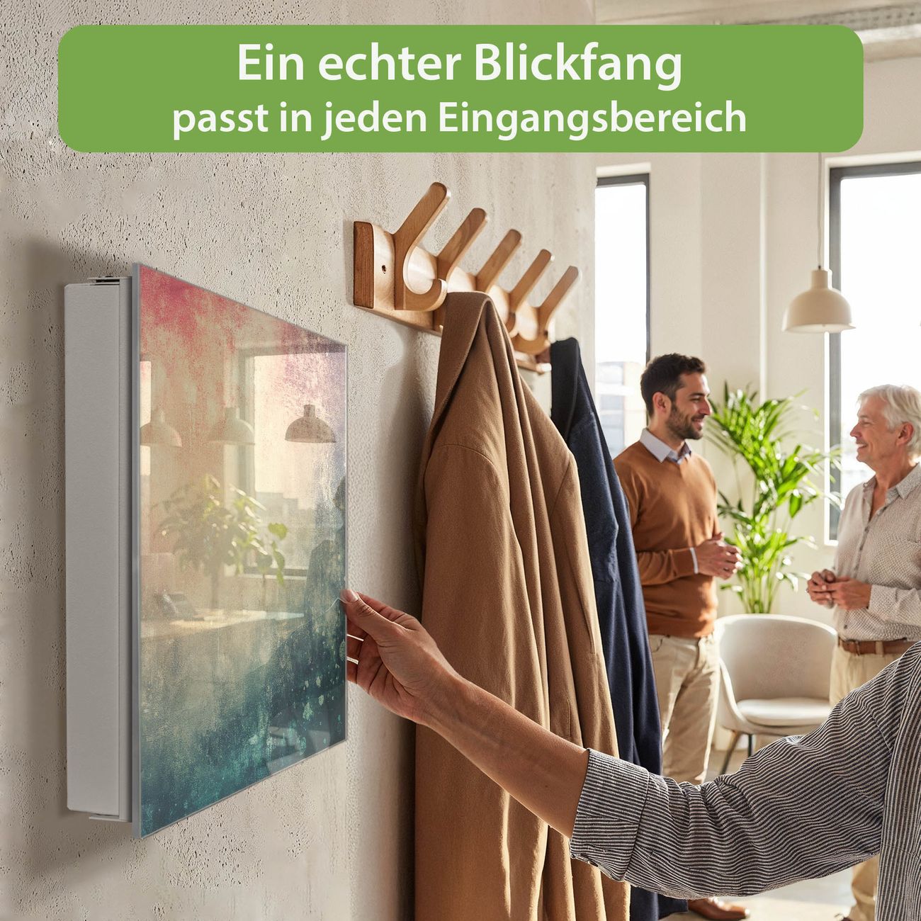 Bringe Ordnung und Eleganz in deinen Eingangsbereich mit dem banjado Schlüsselkasten Motiv Struktur Verträumt. Die moderne Schlüsselbox kombiniert funktionales Design mit hochwertiger Verarbeitung und wird so zu einem echten Hingucker in Flur, Büro oder Ferienwohnung. ✅ Stilvolle Schlüsselaufbewahrung mit Glasfront im Motiv Motiv Struktur Verträumt Der Design-Schlüsselkasten Motiv Struktur Verträumt bietet Platz für bis zu 50 Schlüssel, die auf 5 stabilen Reihen mit je 10 Haken übersichtlich verstaut werden. Mit seinen kompakten Maßen von 30 x 30 x 5 cm passt die Schlüsselbox perfekt auch in kleinere Räume. Der weiß lackierte Stahlkorpus mit rechts angeschlagenem Türscharnier harmoniert mit der Glasfront und fügt sich nahtlos in jedes Wohnambiente ein. Ob als Schlüsselorganizer für Zuhause oder als praktische Lösung für Büros, Praxen und Gewerbe, der banjado Schlüsselkasten sorgt für Ordnung und Übersicht. Dank der magnetischen, mit Kreidestiften beschreibbaren Glasfront kannst du Notizen anheften oder Termine direkt auf der Oberfläche festhalten. Die Schlüsselbox Motiv Struktur Verträumt zur Wandmontage wird inklusive Befestigungsmaterial geliefert und ist schnell angebracht. So hast du deine Schlüssel jederzeit griffbereit und zugleich stilvoll verstaut. Mit diesem banjado Schlüsselkasten Motiv Struktur Verträumt kombinierst du praktische Aufbewahrung mit stilvollem Wohndesign. Ob privat oder geschäftlich, die Schlüsselbox sorgt für mehr Ordnung, Übersicht und ein wohnliches Ambiente.Vorteile im Überblick