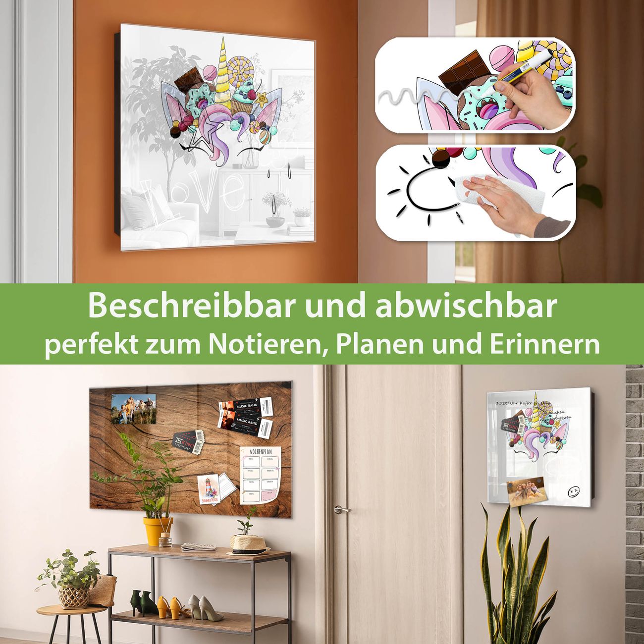✅ Magnetisch und mit Kreidestift beschreibbar, gehärtetes Glas, links angeschlagene TürOrdnung und Design in einem