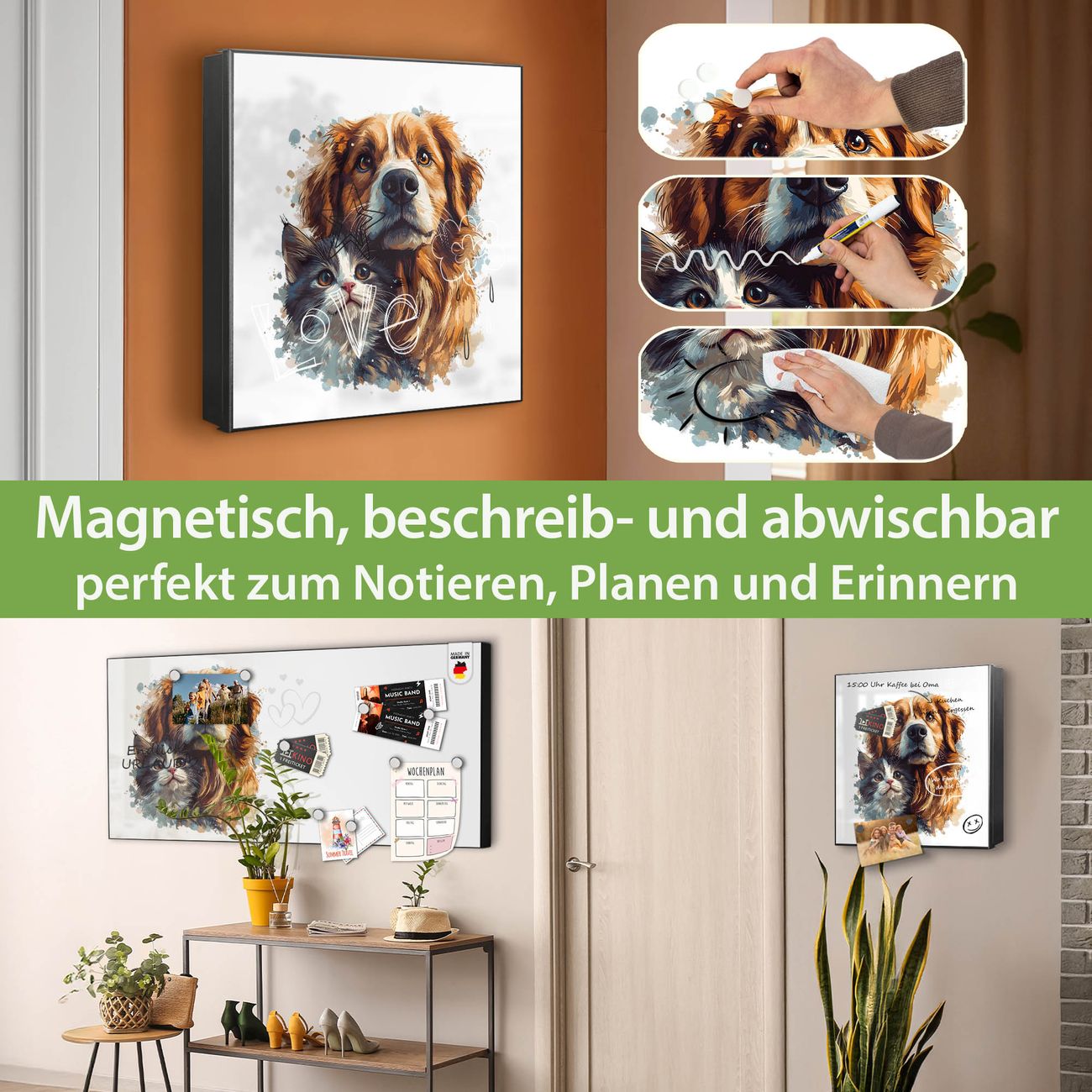 ✅ Magnetisch und mit Kreidestift beschreibbar, links angeschlagene TürOrdnung und Design in einem