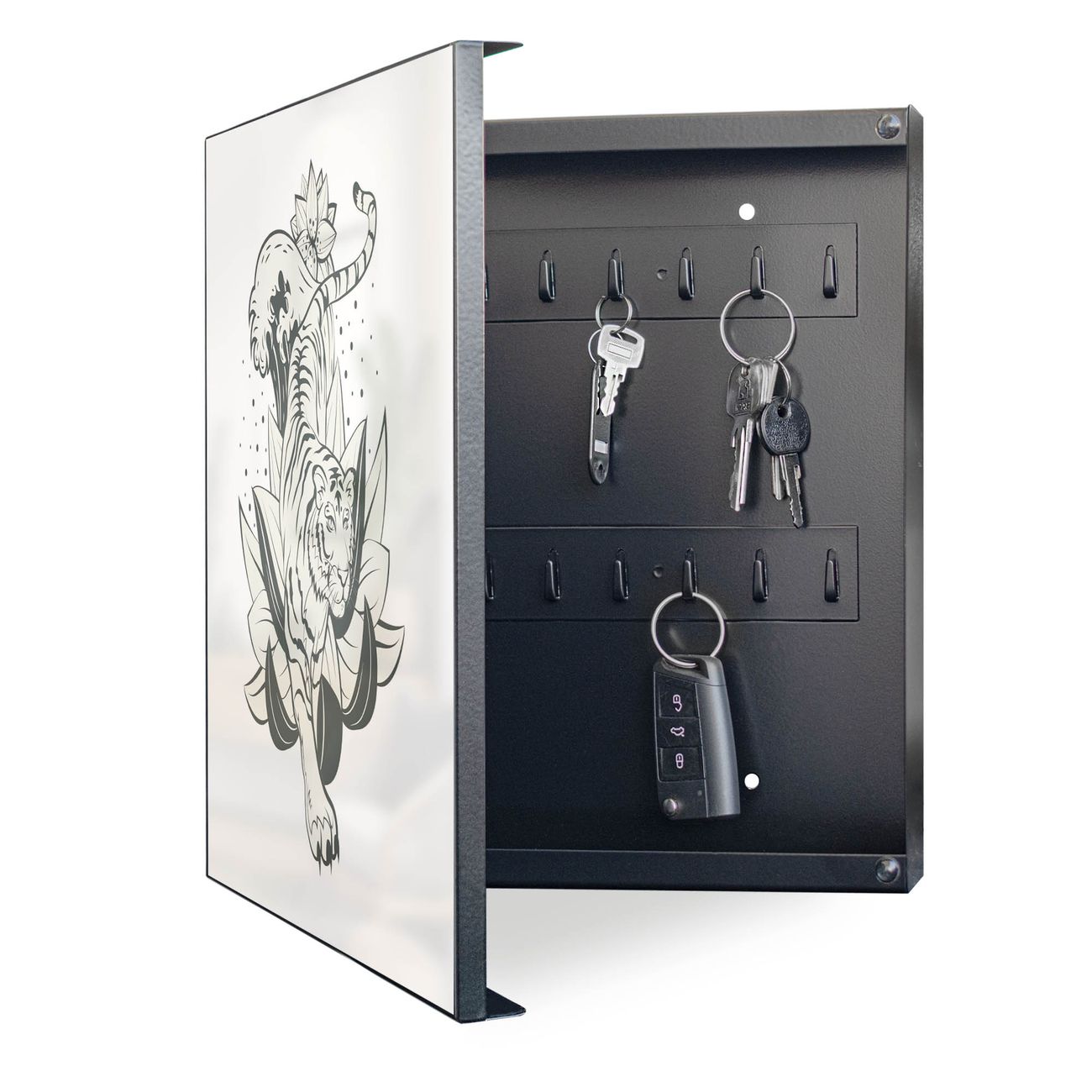 Schlüsselkasten Motiv Tiger und Lotusblüte