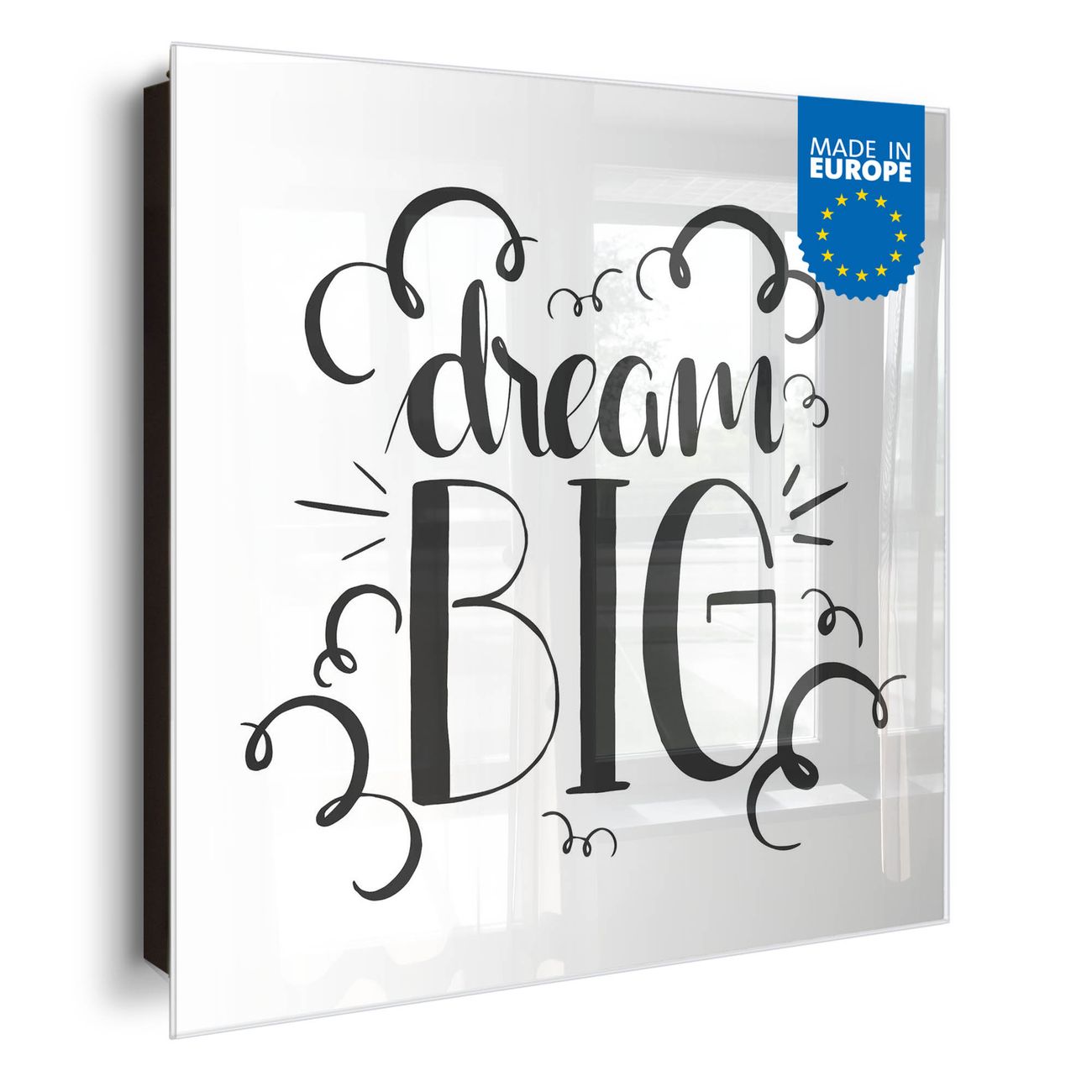 Bringe Ordnung und Eleganz in deinen Eingangsbereich mit dem banjado Schlüsselkasten Motiv Motiv Traum Groß. Die moderne Schlüsselbox kombiniert funktionales Design mit hochwertiger Verarbeitung und wird so zu einem echten Hingucker in Flur, Büro oder Ferienwohnung. ✅ Stilvolle Schlüsselaufbewahrung mit Glasfront im Motiv Motiv Traum Groß Der Design-Schlüsselkasten Motiv Motiv Traum Groß bietet Platz für bis zu 50 Schlüssel, die auf 5 stabilen Reihen mit je 10 Haken übersichtlich verstaut werden. Mit seinen kompakten Maßen von 30 x 30 x 5 cm passt die Schlüsselbox perfekt auch in kleinere Räume. Der schwarz lackierte Stahlkorpus mit rechts angeschlagenem Türscharnier harmoniert mit der Glasfront und fügt sich nahtlos in jedes Wohnambiente ein. Ob als Schlüsselorganizer für Zuhause oder als praktische Lösung für Büros, Praxen und Gewerbe, der banjado Schlüsselkasten sorgt für Ordnung und Übersicht. Dank der magnetischen, mit Kreidestiften beschreibbaren Glasfront kannst du Notizen anheften oder Termine direkt auf der Oberfläche festhalten. Die Schlüsselbox Motiv Motiv Traum Groß zur Wandmontage wird inklusive Befestigungsmaterial geliefert und ist schnell angebracht. So hast du deine Schlüssel jederzeit griffbereit und zugleich stilvoll verstaut. Mit diesem banjado Schlüsselkasten Motiv Motiv Traum Groß kombinierst du praktische Aufbewahrung mit stilvollem Wohndesign. Ob privat oder geschäftlich, die Schlüsselbox sorgt für mehr Ordnung, Übersicht und ein wohnliches Ambiente.Vorteile im Überblick