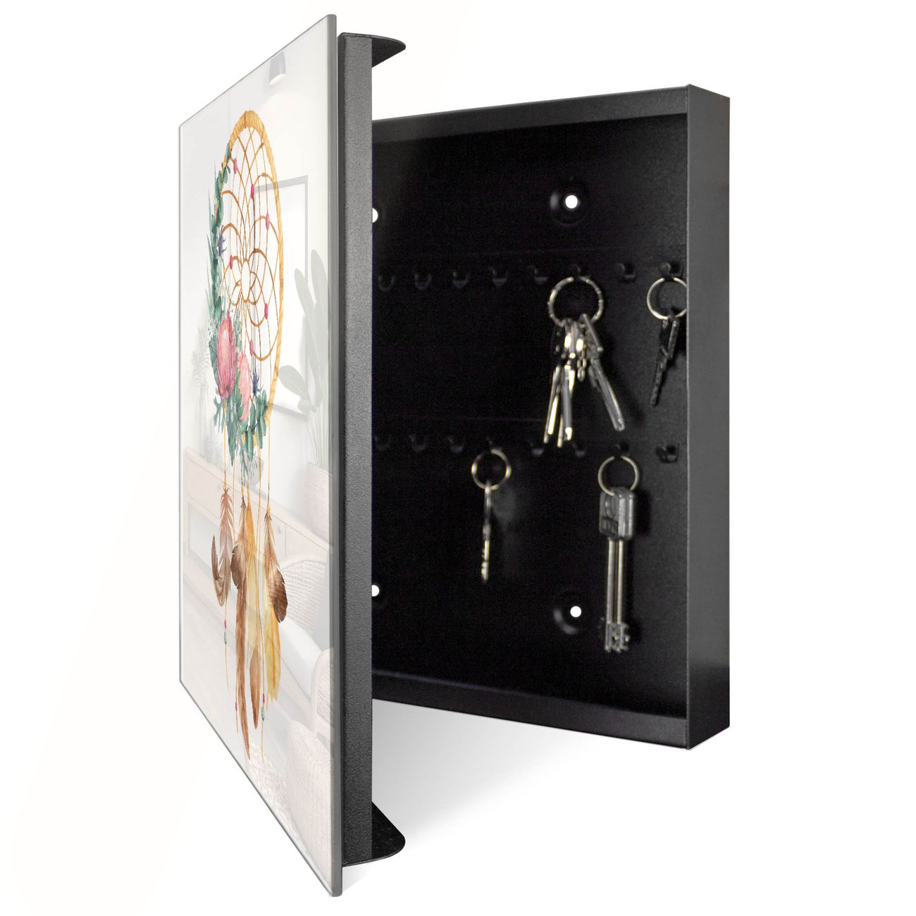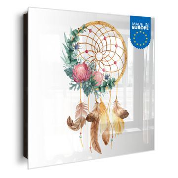 Schlüsselkasten Glas Motiv Traumfänger Federn und Blumen
