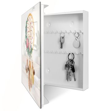 Schlüsselkasten Glas Motiv Traumfänger Federn und Blumen
