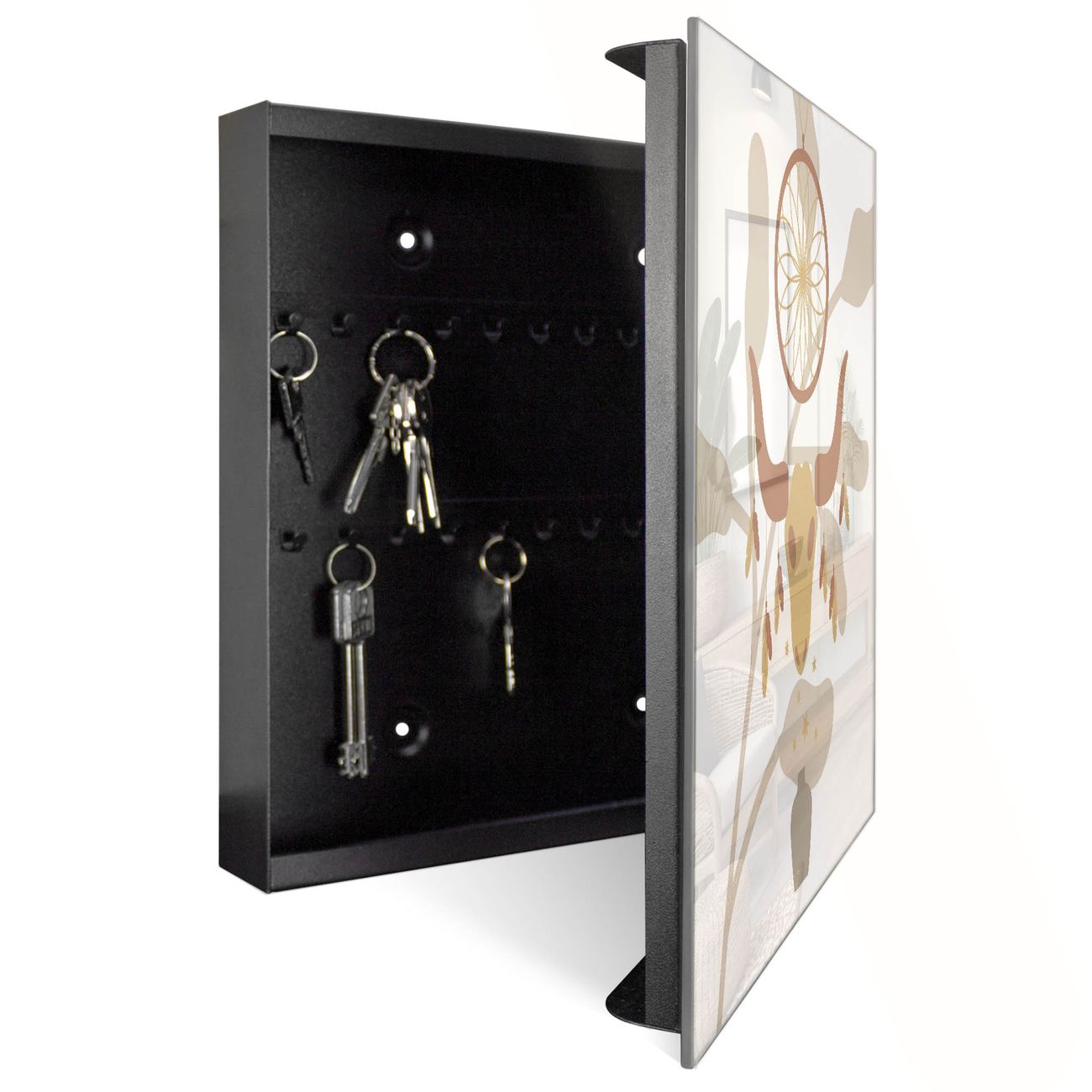 Schlüsselkasten Glas Motiv Traumfänger Mond und Federn