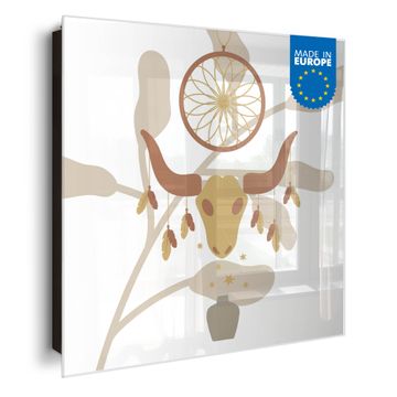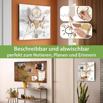 Bringe Ordnung und Eleganz in deinen Eingangsbereich mit dem banjado Schlüsselkasten Motiv Motiv Traumfänger Mond und Federn. Die moderne Schlüsselbox kombiniert funktionales Design mit hochwertiger Verarbeitung und wird so zu einem echten Hingucker in Flur, Büro oder Ferienwohnung. ✅ Stilvolle Schlüsselaufbewahrung mit Glasfront im Motiv Motiv Traumfänger Mond und Federn Der Design-Schlüsselkasten Motiv Motiv Traumfänger Mond und Federn bietet Platz für bis zu 50 Schlüssel, die auf 5 stabilen Reihen mit je 10 Haken übersichtlich verstaut werden. Mit seinen kompakten Maßen von 30 x 30 x 5 cm passt die Schlüsselbox perfekt auch in kleinere Räume. Der schwarz lackierte Stahlkorpus mit rechts angeschlagenem Türscharnier harmoniert mit der Glasfront und fügt sich nahtlos in jedes Wohnambiente ein. Ob als Schlüsselorganizer für Zuhause oder als praktische Lösung für Büros, Praxen und Gewerbe, der banjado Schlüsselkasten sorgt für Ordnung und Übersicht. Dank der magnetischen, mit Kreidestiften beschreibbaren Glasfront kannst du Notizen anheften oder Termine direkt auf der Oberfläche festhalten. Die Schlüsselbox Motiv Motiv Traumfänger Mond und Federn zur Wandmontage wird inklusive Befestigungsmaterial geliefert und ist schnell angebracht. So hast du deine Schlüssel jederzeit griffbereit und zugleich stilvoll verstaut. Mit diesem banjado Schlüsselkasten Motiv Motiv Traumfänger Mond und Federn kombinierst du praktische Aufbewahrung mit stilvollem Wohndesign. Ob privat oder geschäftlich, die Schlüsselbox sorgt für mehr Ordnung, Übersicht und ein wohnliches Ambiente.Vorteile im Überblick