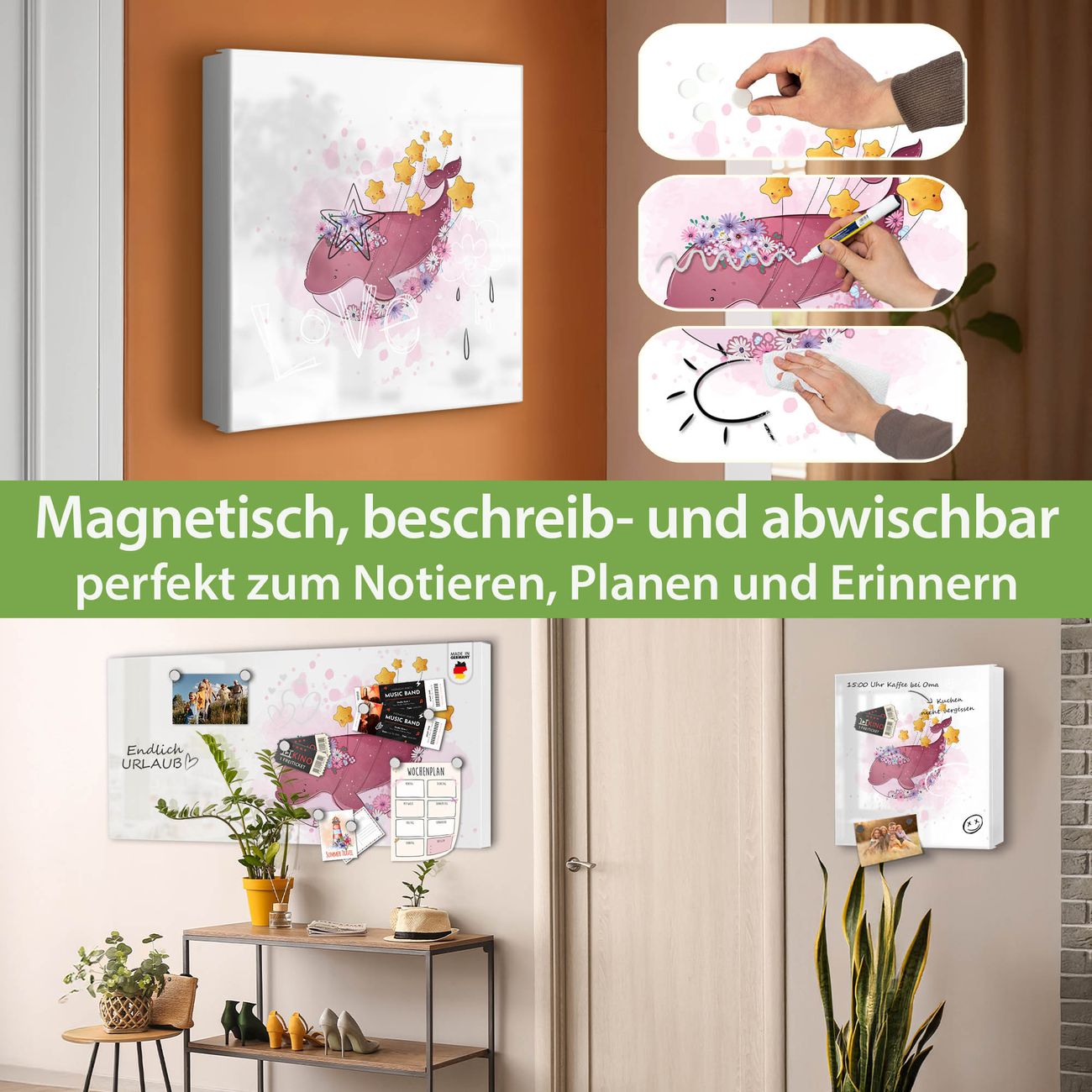 ✅ Magnetisch und mit Kreidestift beschreibbar, links angeschlagene TürOrdnung und Design in einem
