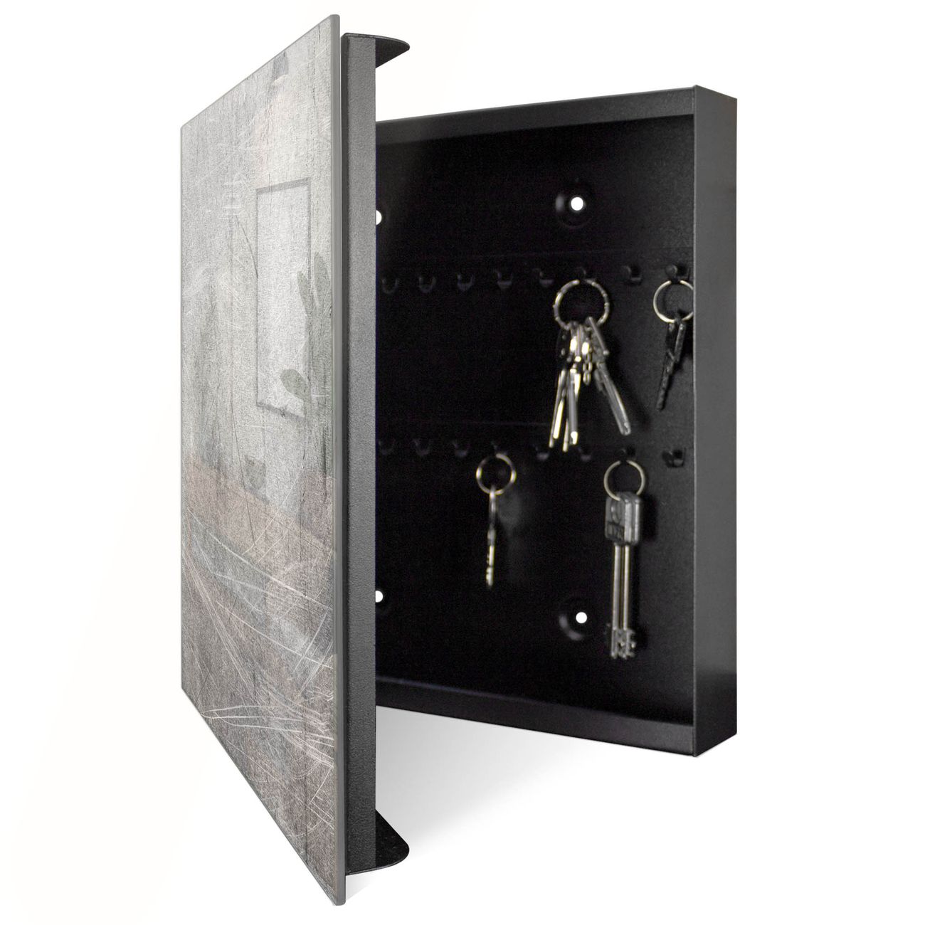 Schlüsselkasten Glas Motiv Verkratztes Metall Grau