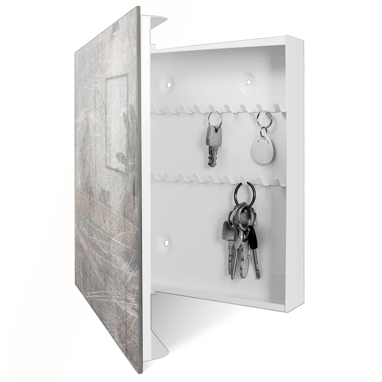 Schlüsselkasten Glas Motiv Verkratztes Metall Grau