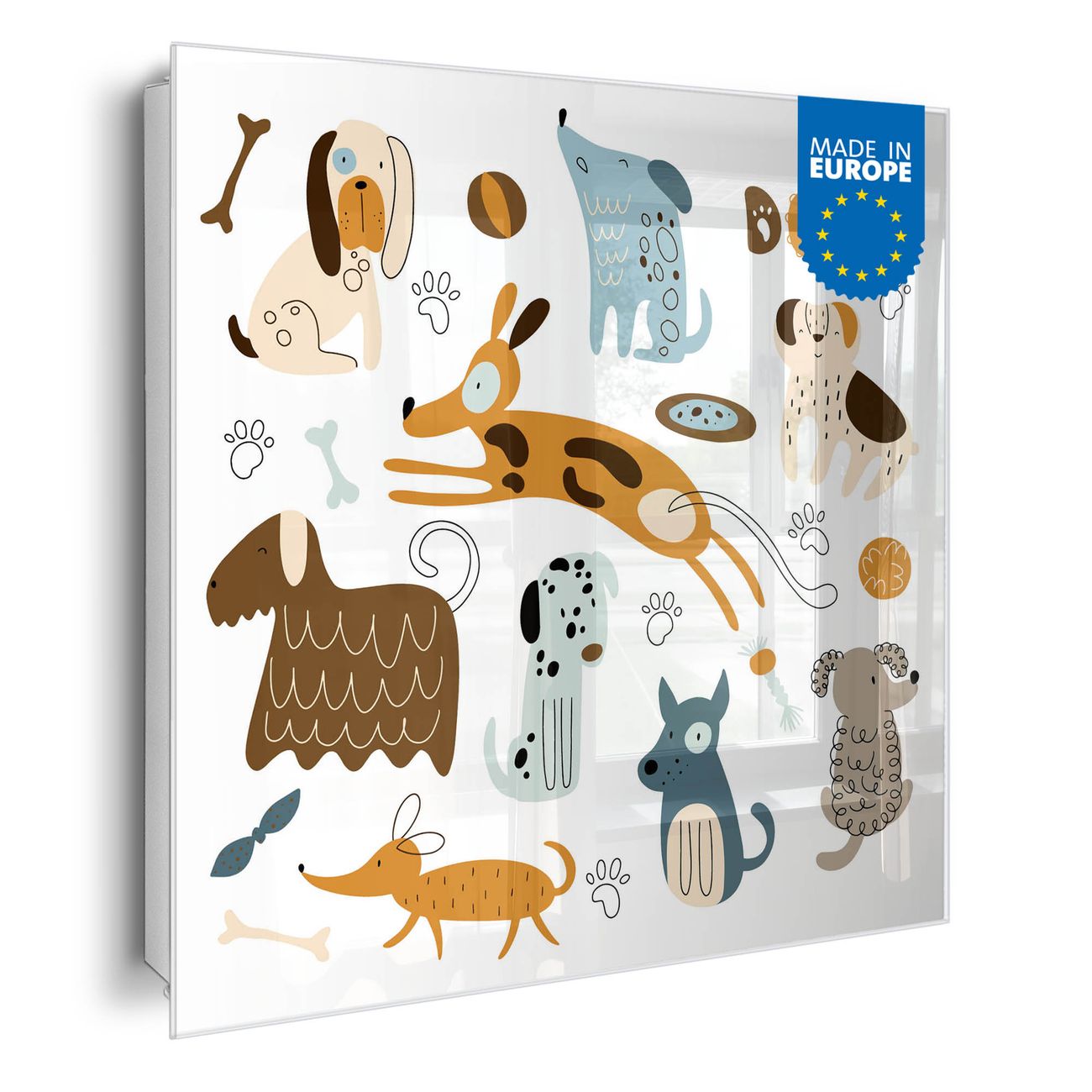 Schlüsselkasten Glas Motiv Verspielte Hunde-Illustration