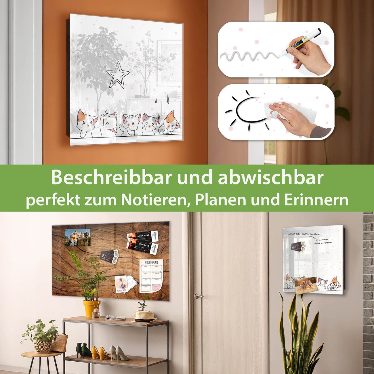 ✅ Magnetisch und mit Kreidestift beschreibbar, gehärtetes Glas, rechts angeschlagene TürOrdnung und Design in einem