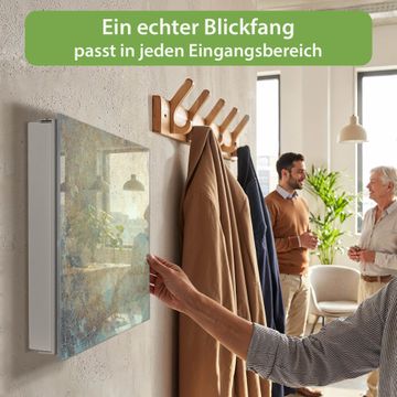 Bringe Ordnung und Eleganz in deinen Eingangsbereich mit dem banjado Schlüsselkasten Motiv Verwitterte Patina. Die moderne Schlüsselbox kombiniert funktionales Design mit hochwertiger Verarbeitung und wird so zu einem echten Hingucker in Flur, Büro oder Ferienwohnung. ✅ Stilvolle Schlüsselaufbewahrung mit Glasfront im Motiv Motiv Verwitterte Patina Der Design-Schlüsselkasten Motiv Verwitterte Patina bietet Platz für bis zu 50 Schlüssel, die auf 5 stabilen Reihen mit je 10 Haken übersichtlich verstaut werden. Mit seinen kompakten Maßen von 30 x 30 x 5 cm passt die Schlüsselbox perfekt auch in kleinere Räume. Der weiß lackierte Stahlkorpus mit rechts angeschlagenem Türscharnier harmoniert mit der Glasfront und fügt sich nahtlos in jedes Wohnambiente ein. Ob als Schlüsselorganizer für Zuhause oder als praktische Lösung für Büros, Praxen und Gewerbe, der banjado Schlüsselkasten sorgt für Ordnung und Übersicht. Dank der magnetischen, mit Kreidestiften beschreibbaren Glasfront kannst du Notizen anheften oder Termine direkt auf der Oberfläche festhalten. Die Schlüsselbox Motiv Verwitterte Patina zur Wandmontage wird inklusive Befestigungsmaterial geliefert und ist schnell angebracht. So hast du deine Schlüssel jederzeit griffbereit und zugleich stilvoll verstaut. Mit diesem banjado Schlüsselkasten Motiv Verwitterte Patina kombinierst du praktische Aufbewahrung mit stilvollem Wohndesign. Ob privat oder geschäftlich, die Schlüsselbox sorgt für mehr Ordnung, Übersicht und ein wohnliches Ambiente.Vorteile im Überblick