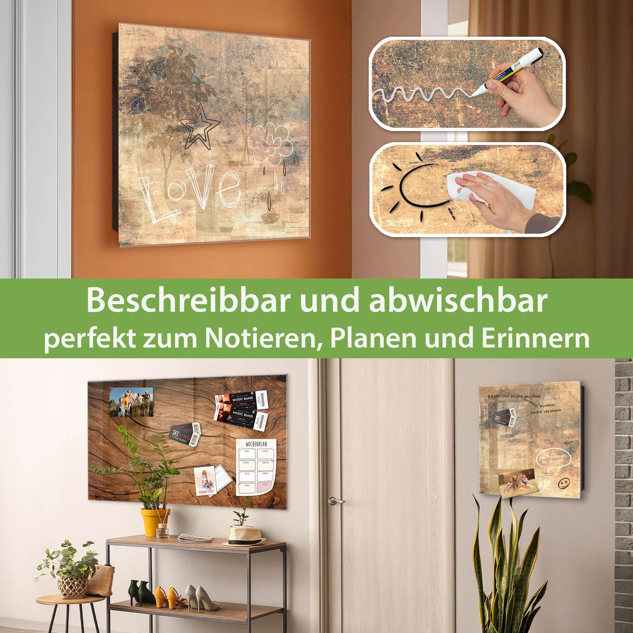 ✅ Magnetisch und mit Kreidestift beschreibbar, gehärtetes Glas, links angeschlagene TürOrdnung und Design in einem
