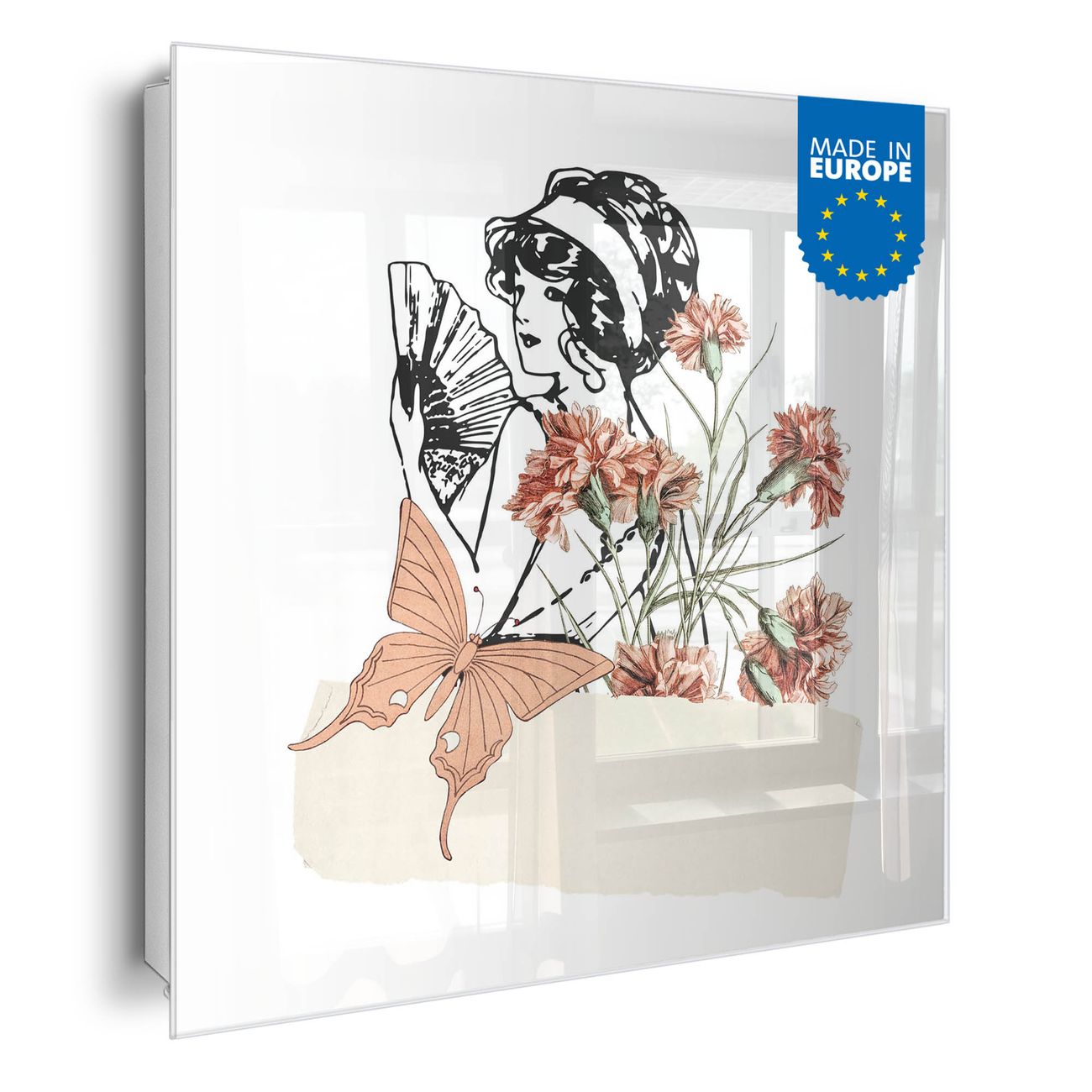 Bringe Ordnung und Eleganz in deinen Eingangsbereich mit dem banjado Schlüsselkasten Motiv Motiv Vintage Blumenfrau. Die moderne Schlüsselbox kombiniert funktionales Design mit hochwertiger Verarbeitung und wird so zu einem echten Hingucker in Flur, Büro oder Ferienwohnung. ✅ Stilvolle Schlüsselaufbewahrung mit Glasfront im Motiv Motiv Vintage Blumenfrau Der Design-Schlüsselkasten Motiv Motiv Vintage Blumenfrau bietet Platz für bis zu 50 Schlüssel, die auf 5 stabilen Reihen mit je 10 Haken übersichtlich verstaut werden. Mit seinen kompakten Maßen von 30 x 30 x 5 cm passt die Schlüsselbox perfekt auch in kleinere Räume. Der weiß lackierte Stahlkorpus mit rechts angeschlagenem Türscharnier harmoniert mit der Glasfront und fügt sich nahtlos in jedes Wohnambiente ein. Ob als Schlüsselorganizer für Zuhause oder als praktische Lösung für Büros, Praxen und Gewerbe, der banjado Schlüsselkasten sorgt für Ordnung und Übersicht. Dank der magnetischen, mit Kreidestiften beschreibbaren Glasfront kannst du Notizen anheften oder Termine direkt auf der Oberfläche festhalten. Die Schlüsselbox Motiv Motiv Vintage Blumenfrau zur Wandmontage wird inklusive Befestigungsmaterial geliefert und ist schnell angebracht. So hast du deine Schlüssel jederzeit griffbereit und zugleich stilvoll verstaut. Mit diesem banjado Schlüsselkasten Motiv Motiv Vintage Blumenfrau kombinierst du praktische Aufbewahrung mit stilvollem Wohndesign. Ob privat oder geschäftlich, die Schlüsselbox sorgt für mehr Ordnung, Übersicht und ein wohnliches Ambiente.Vorteile im Überblick