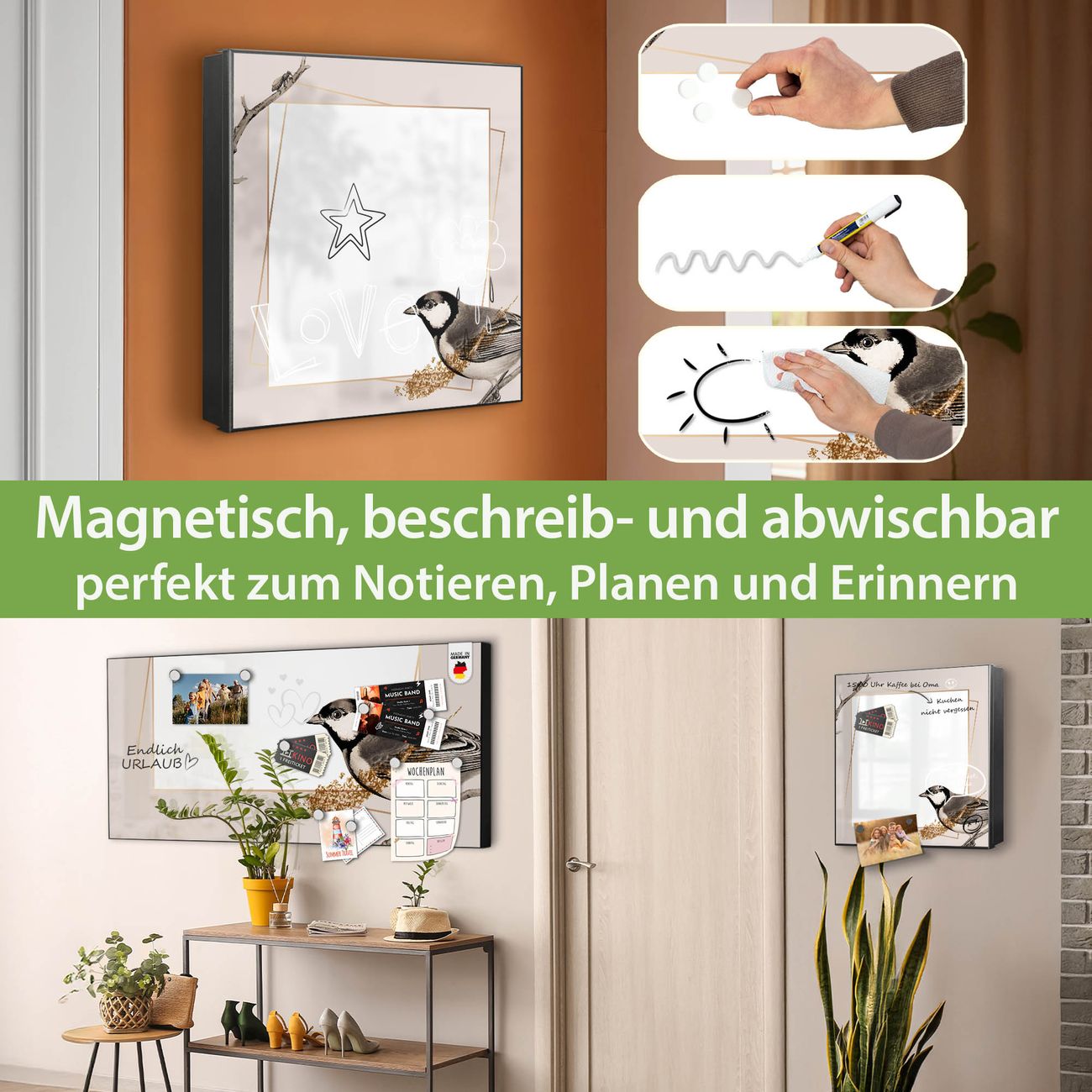 ✅ Magnetisch und mit Kreidestift beschreibbar, rechts angeschlagene TürOrdnung und Design in einem