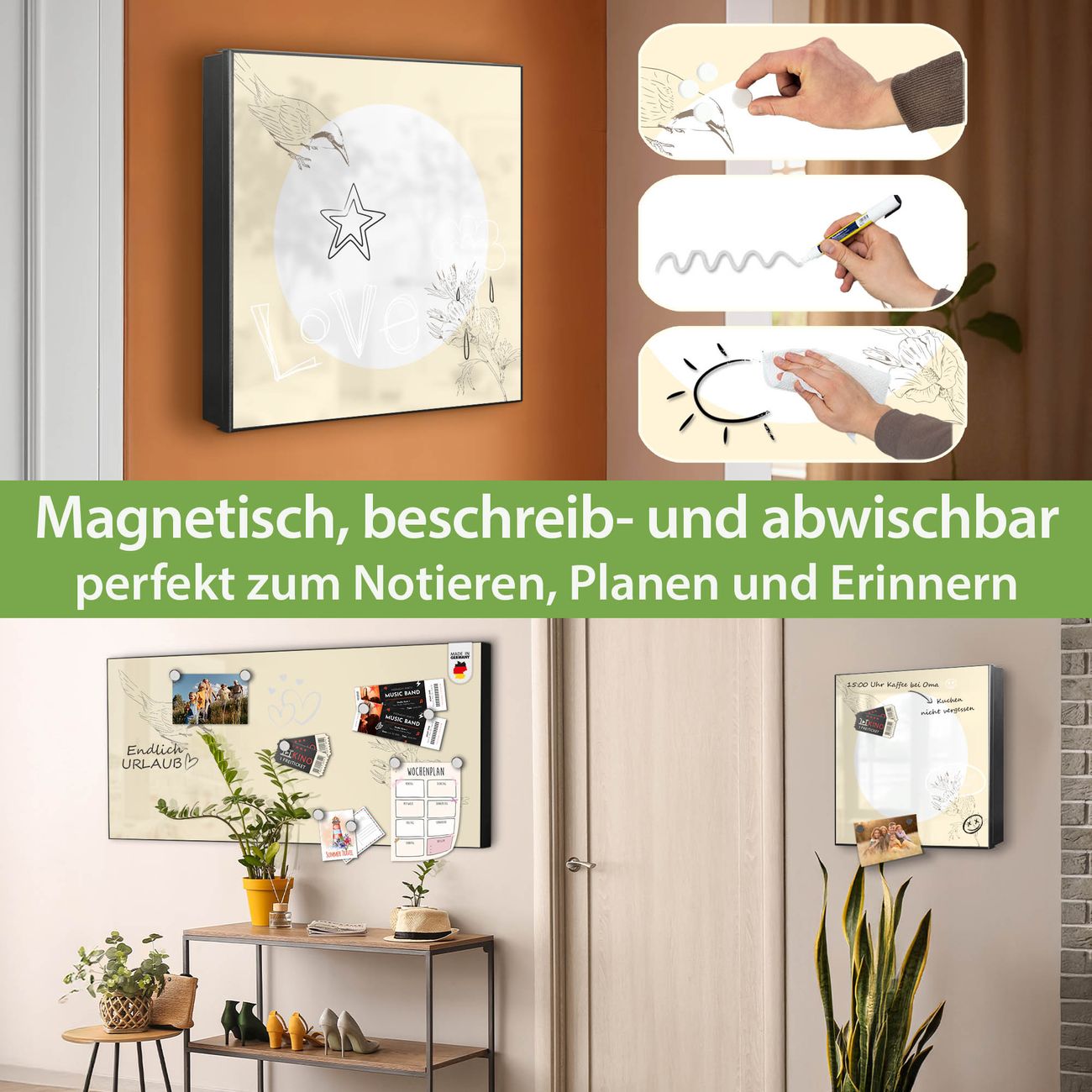 ✅ Magnetisch und mit Kreidestift beschreibbar, rechts angeschlagene TürOrdnung und Design in einem