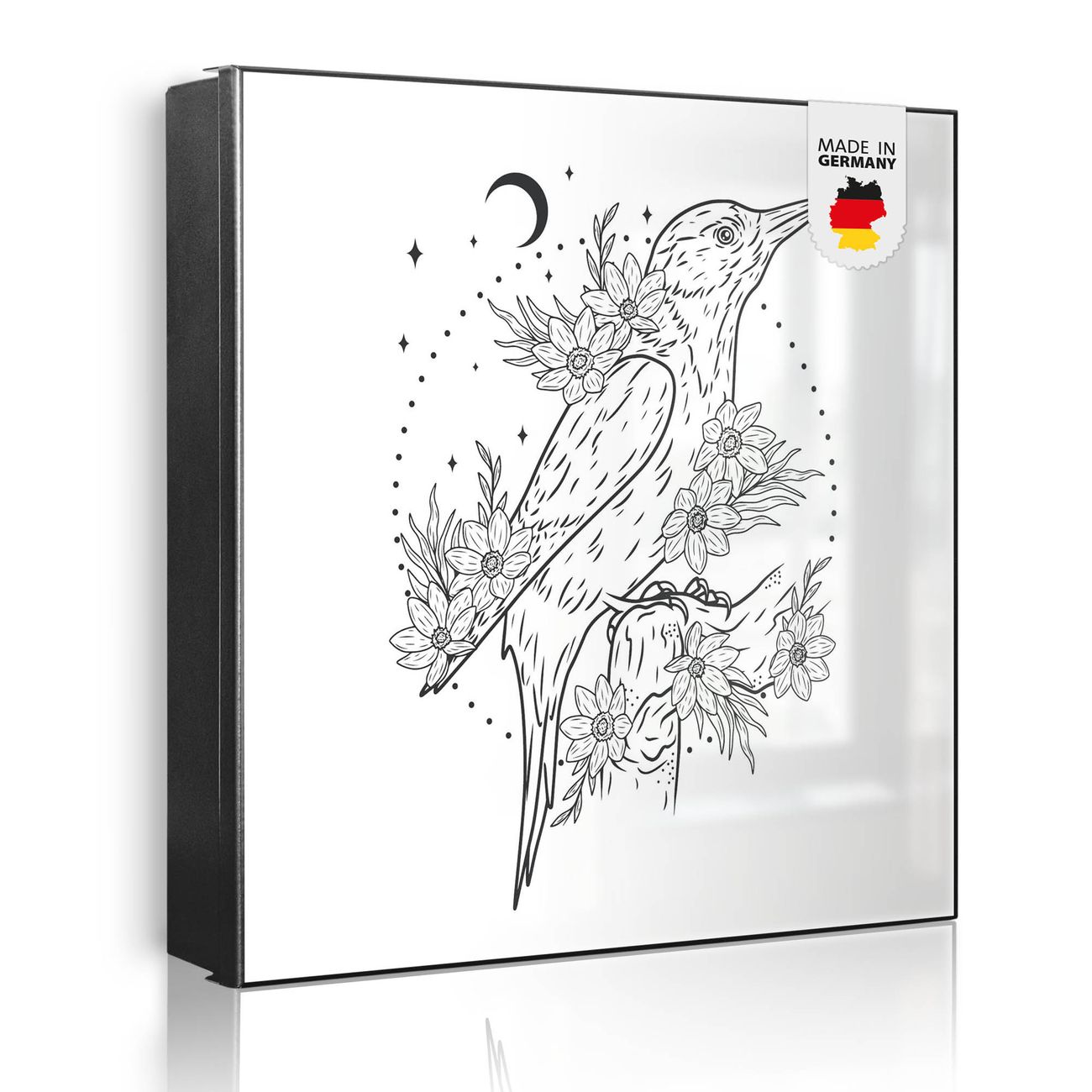 Schlüsselkasten Motiv Vogel und Blumen im Mondlicht