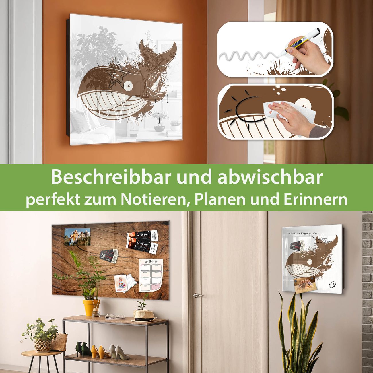 ✅ Magnetisch und mit Kreidestift beschreibbar, gehärtetes Glas, rechts angeschlagene TürOrdnung und Design in einem