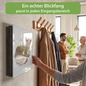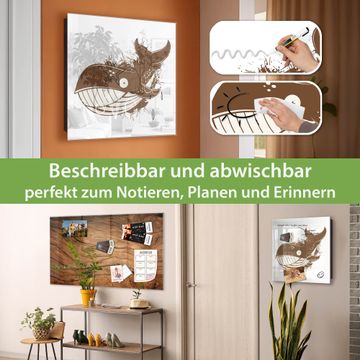 Bringe Ordnung und Eleganz in deinen Eingangsbereich mit dem banjado Schlüsselkasten Motiv Motiv Wal Comic 2. Die moderne Schlüsselbox kombiniert funktionales Design mit hochwertiger Verarbeitung und wird so zu einem echten Hingucker in Flur, Büro oder Ferienwohnung. ✅ Stilvolle Schlüsselaufbewahrung mit Glasfront im Motiv Motiv Wal Comic 2 Der Design-Schlüsselkasten Motiv Motiv Wal Comic 2 bietet Platz für bis zu 50 Schlüssel, die auf 5 stabilen Reihen mit je 10 Haken übersichtlich verstaut werden. Mit seinen kompakten Maßen von 30 x 30 x 5 cm passt die Schlüsselbox perfekt auch in kleinere Räume. Der schwarz lackierte Stahlkorpus mit rechts angeschlagenem Türscharnier harmoniert mit der Glasfront und fügt sich nahtlos in jedes Wohnambiente ein. Ob als Schlüsselorganizer für Zuhause oder als praktische Lösung für Büros, Praxen und Gewerbe, der banjado Schlüsselkasten sorgt für Ordnung und Übersicht. Dank der magnetischen, mit Kreidestiften beschreibbaren Glasfront kannst du Notizen anheften oder Termine direkt auf der Oberfläche festhalten. Die Schlüsselbox Motiv Motiv Wal Comic 2 zur Wandmontage wird inklusive Befestigungsmaterial geliefert und ist schnell angebracht. So hast du deine Schlüssel jederzeit griffbereit und zugleich stilvoll verstaut. Mit diesem banjado Schlüsselkasten Motiv Motiv Wal Comic 2 kombinierst du praktische Aufbewahrung mit stilvollem Wohndesign. Ob privat oder geschäftlich, die Schlüsselbox sorgt für mehr Ordnung, Übersicht und ein wohnliches Ambiente.Vorteile im Überblick
