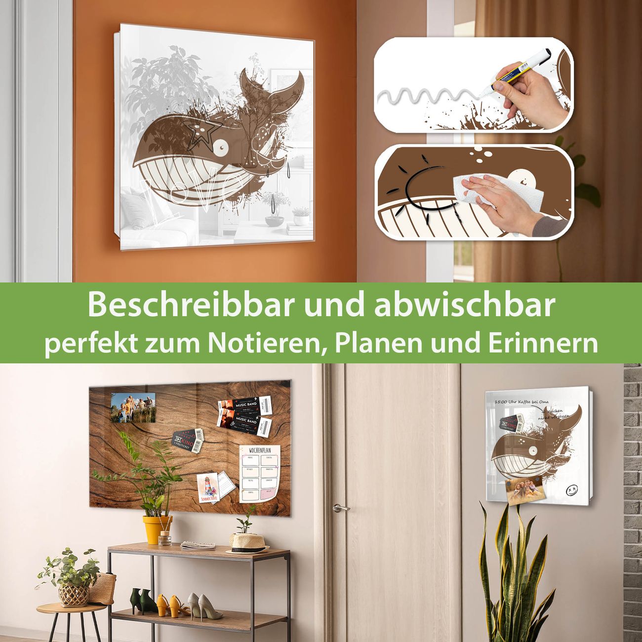 ✅ Magnetisch und mit Kreidestift beschreibbar, gehärtetes Glas, links angeschlagene TürOrdnung und Design in einem