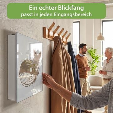 Bringe Ordnung und Eleganz in deinen Eingangsbereich mit dem banjado Schlüsselkasten Motiv Motiv Wal Comic 2. Die moderne Schlüsselbox kombiniert funktionales Design mit hochwertiger Verarbeitung und wird so zu einem echten Hingucker in Flur, Büro oder Ferienwohnung. ✅ Stilvolle Schlüsselaufbewahrung mit Glasfront im Motiv Motiv Wal Comic 2 Der Design-Schlüsselkasten Motiv Motiv Wal Comic 2 bietet Platz für bis zu 50 Schlüssel, die auf 5 stabilen Reihen mit je 10 Haken übersichtlich verstaut werden. Mit seinen kompakten Maßen von 30 x 30 x 5 cm passt die Schlüsselbox perfekt auch in kleinere Räume. Der weiß lackierte Stahlkorpus mit rechts angeschlagenem Türscharnier harmoniert mit der Glasfront und fügt sich nahtlos in jedes Wohnambiente ein. Ob als Schlüsselorganizer für Zuhause oder als praktische Lösung für Büros, Praxen und Gewerbe, der banjado Schlüsselkasten sorgt für Ordnung und Übersicht. Dank der magnetischen, mit Kreidestiften beschreibbaren Glasfront kannst du Notizen anheften oder Termine direkt auf der Oberfläche festhalten. Die Schlüsselbox Motiv Motiv Wal Comic 2 zur Wandmontage wird inklusive Befestigungsmaterial geliefert und ist schnell angebracht. So hast du deine Schlüssel jederzeit griffbereit und zugleich stilvoll verstaut. Mit diesem banjado Schlüsselkasten Motiv Motiv Wal Comic 2 kombinierst du praktische Aufbewahrung mit stilvollem Wohndesign. Ob privat oder geschäftlich, die Schlüsselbox sorgt für mehr Ordnung, Übersicht und ein wohnliches Ambiente.Vorteile im Überblick