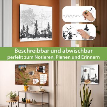 Bringe Ordnung und Eleganz in deinen Eingangsbereich mit dem banjado Schlüsselkasten Motiv Motiv Waldabenteuer Silhouette. Die moderne Schlüsselbox kombiniert funktionales Design mit hochwertiger Verarbeitung und wird so zu einem echten Hingucker in Flur, Büro oder Ferienwohnung. ✅ Stilvolle Schlüsselaufbewahrung mit Glasfront im Motiv Motiv Waldabenteuer Silhouette Der Design-Schlüsselkasten Motiv Motiv Waldabenteuer Silhouette bietet Platz für bis zu 50 Schlüssel, die auf 5 stabilen Reihen mit je 10 Haken übersichtlich verstaut werden. Mit seinen kompakten Maßen von 30 x 30 x 5 cm passt die Schlüsselbox perfekt auch in kleinere Räume. Der schwarz lackierte Stahlkorpus mit rechts angeschlagenem Türscharnier harmoniert mit der Glasfront und fügt sich nahtlos in jedes Wohnambiente ein. Ob als Schlüsselorganizer für Zuhause oder als praktische Lösung für Büros, Praxen und Gewerbe, der banjado Schlüsselkasten sorgt für Ordnung und Übersicht. Dank der magnetischen, mit Kreidestiften beschreibbaren Glasfront kannst du Notizen anheften oder Termine direkt auf der Oberfläche festhalten. Die Schlüsselbox Motiv Motiv Waldabenteuer Silhouette zur Wandmontage wird inklusive Befestigungsmaterial geliefert und ist schnell angebracht. So hast du deine Schlüssel jederzeit griffbereit und zugleich stilvoll verstaut. Mit diesem banjado Schlüsselkasten Motiv Motiv Waldabenteuer Silhouette kombinierst du praktische Aufbewahrung mit stilvollem Wohndesign. Ob privat oder geschäftlich, die Schlüsselbox sorgt für mehr Ordnung, Übersicht und ein wohnliches Ambiente.Vorteile im Überblick
