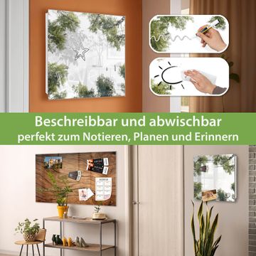 Bringe Ordnung und Eleganz in deinen Eingangsbereich mit dem banjado Schlüsselkasten Motiv Motiv Waldhimmel. Die moderne Schlüsselbox kombiniert funktionales Design mit hochwertiger Verarbeitung und wird so zu einem echten Hingucker in Flur, Büro oder Ferienwohnung. ✅ Stilvolle Schlüsselaufbewahrung mit Glasfront im Motiv Motiv Waldhimmel Der Design-Schlüsselkasten Motiv Motiv Waldhimmel bietet Platz für bis zu 50 Schlüssel, die auf 5 stabilen Reihen mit je 10 Haken übersichtlich verstaut werden. Mit seinen kompakten Maßen von 30 x 30 x 5 cm passt die Schlüsselbox perfekt auch in kleinere Räume. Der weiß lackierte Stahlkorpus mit rechts angeschlagenem Türscharnier harmoniert mit der Glasfront und fügt sich nahtlos in jedes Wohnambiente ein. Ob als Schlüsselorganizer für Zuhause oder als praktische Lösung für Büros, Praxen und Gewerbe, der banjado Schlüsselkasten sorgt für Ordnung und Übersicht. Dank der magnetischen, mit Kreidestiften beschreibbaren Glasfront kannst du Notizen anheften oder Termine direkt auf der Oberfläche festhalten. Die Schlüsselbox Motiv Motiv Waldhimmel zur Wandmontage wird inklusive Befestigungsmaterial geliefert und ist schnell angebracht. So hast du deine Schlüssel jederzeit griffbereit und zugleich stilvoll verstaut. Mit diesem banjado Schlüsselkasten Motiv Motiv Waldhimmel kombinierst du praktische Aufbewahrung mit stilvollem Wohndesign. Ob privat oder geschäftlich, die Schlüsselbox sorgt für mehr Ordnung, Übersicht und ein wohnliches Ambiente.Vorteile im Überblick