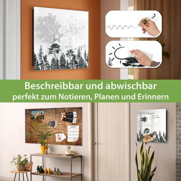 Bringe Ordnung und Eleganz in deinen Eingangsbereich mit dem banjado Schlüsselkasten Motiv Motiv Waldsilhouette. Die moderne Schlüsselbox kombiniert funktionales Design mit hochwertiger Verarbeitung und wird so zu einem echten Hingucker in Flur, Büro oder Ferienwohnung. ✅ Stilvolle Schlüsselaufbewahrung mit Glasfront im Motiv Motiv Waldsilhouette Der Design-Schlüsselkasten Motiv Motiv Waldsilhouette bietet Platz für bis zu 50 Schlüssel, die auf 5 stabilen Reihen mit je 10 Haken übersichtlich verstaut werden. Mit seinen kompakten Maßen von 30 x 30 x 5 cm passt die Schlüsselbox perfekt auch in kleinere Räume. Der schwarz lackierte Stahlkorpus mit rechts angeschlagenem Türscharnier harmoniert mit der Glasfront und fügt sich nahtlos in jedes Wohnambiente ein. Ob als Schlüsselorganizer für Zuhause oder als praktische Lösung für Büros, Praxen und Gewerbe, der banjado Schlüsselkasten sorgt für Ordnung und Übersicht. Dank der magnetischen, mit Kreidestiften beschreibbaren Glasfront kannst du Notizen anheften oder Termine direkt auf der Oberfläche festhalten. Die Schlüsselbox Motiv Motiv Waldsilhouette zur Wandmontage wird inklusive Befestigungsmaterial geliefert und ist schnell angebracht. So hast du deine Schlüssel jederzeit griffbereit und zugleich stilvoll verstaut. Mit diesem banjado Schlüsselkasten Motiv Motiv Waldsilhouette kombinierst du praktische Aufbewahrung mit stilvollem Wohndesign. Ob privat oder geschäftlich, die Schlüsselbox sorgt für mehr Ordnung, Übersicht und ein wohnliches Ambiente.Vorteile im Überblick