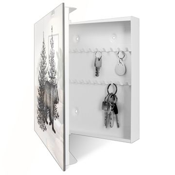 Schlüsselkasten Glas Motiv Waldspaziergang mit Bär
