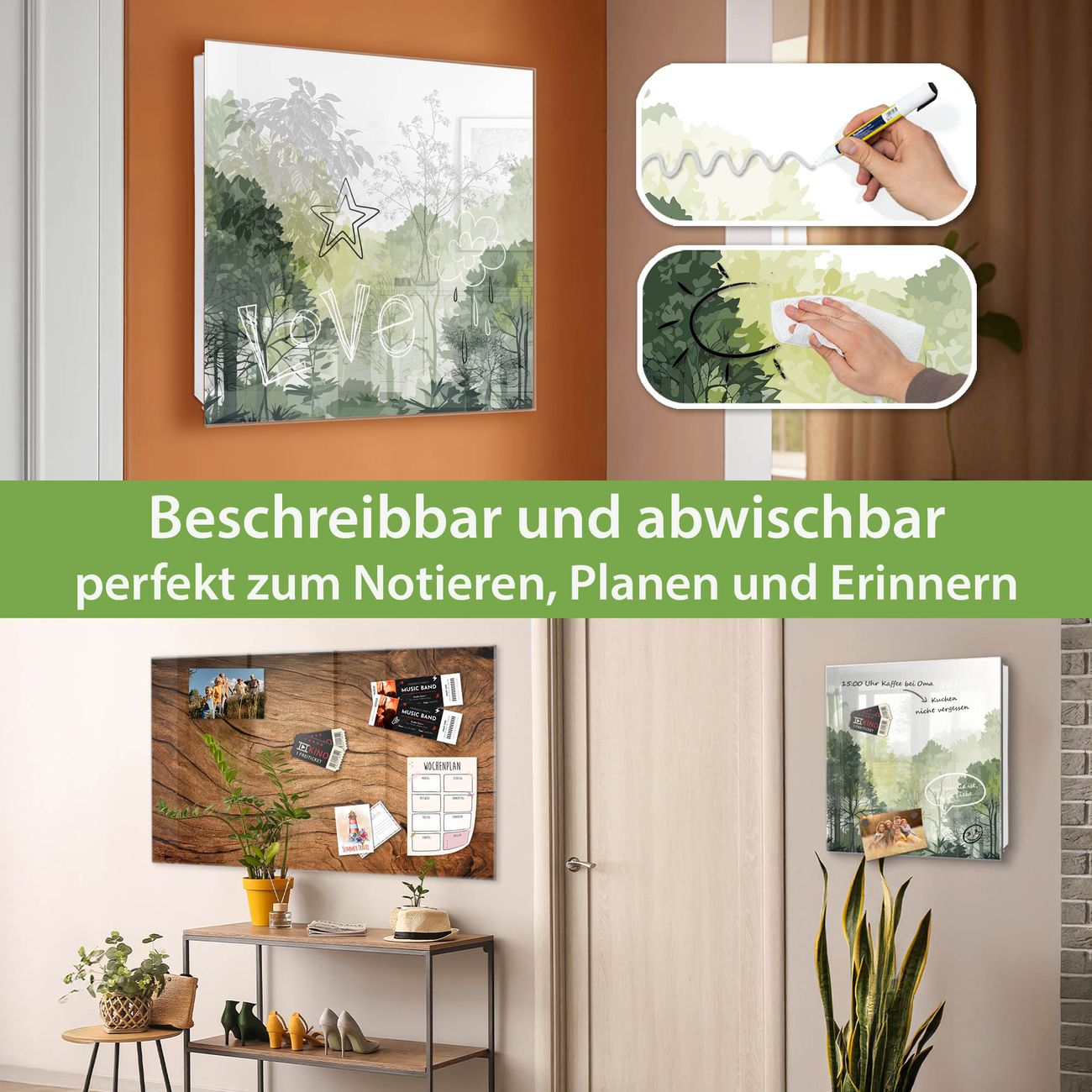 ✅ Magnetisch und mit Kreidestift beschreibbar, gehärtetes Glas, rechts angeschlagene TürOrdnung und Design in einem
